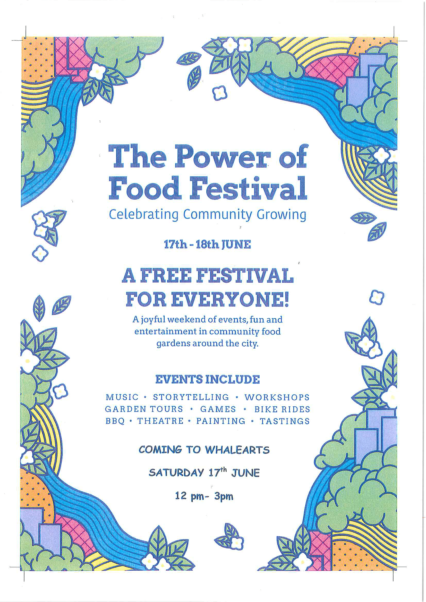 WHALE Arts’ Westburn Can project would like to invite local people to the WHALE on Saturday 17 June 12.00pm – 3.00pm to celebrate the Power of Food Festival.