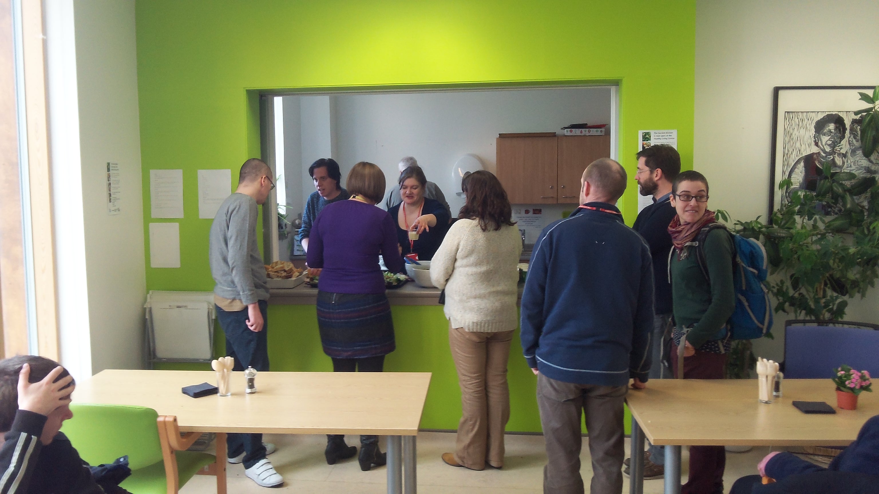 The launch was going well when we paid a visit with a huge queue of staff, some commenting that they had followed their noses to the soup, and Health Agency users eagerly waiting for some healthy homemade food.