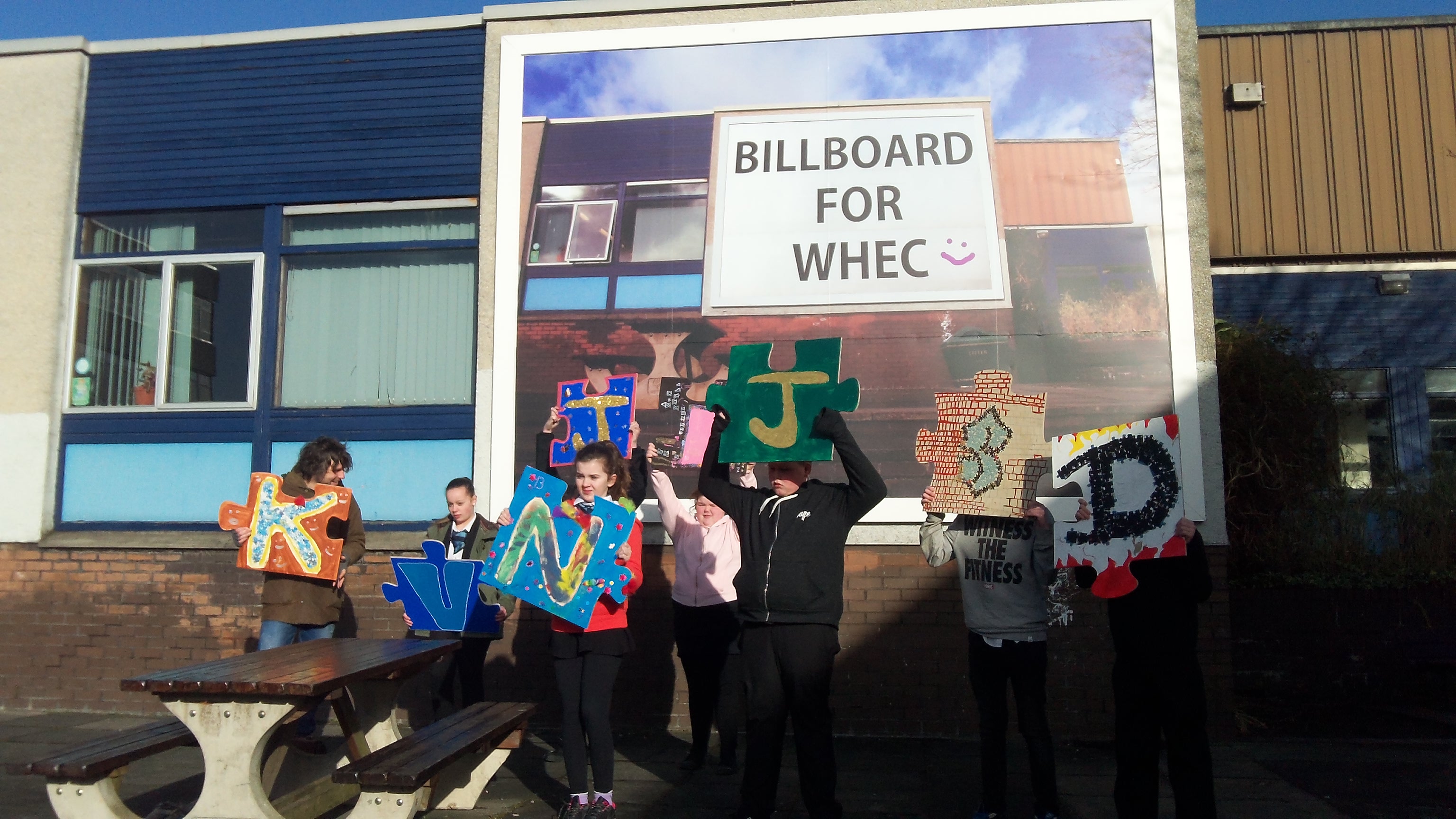 In September 2014, The Art Room studio was opened to offer art as a therapeutic intervention to students of WHEC and the neighbouring primary schools. Kevin Harman’s Billboard will celebrate the strength of art in engaging creatively with students.