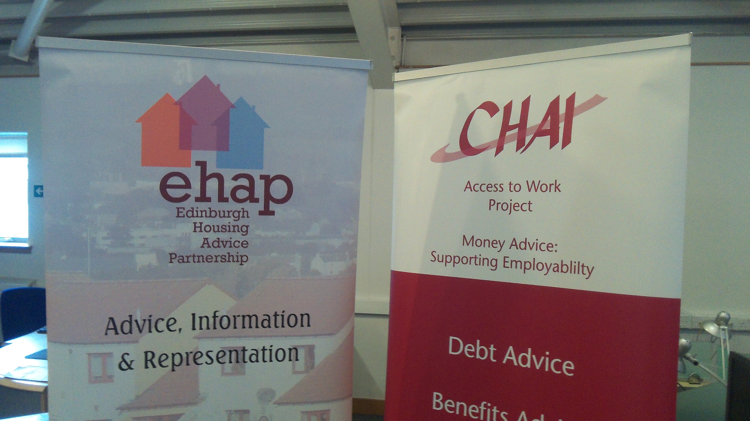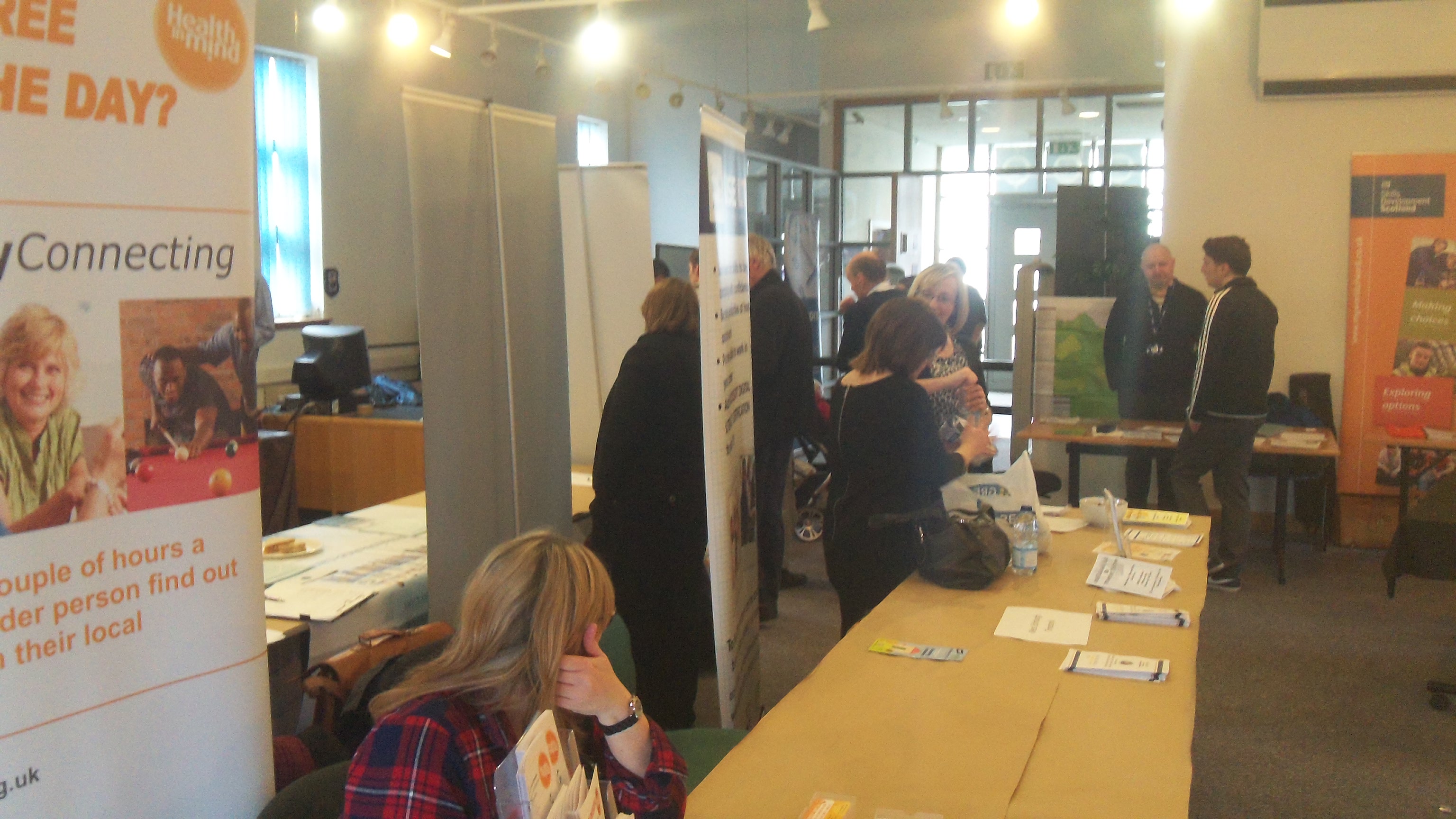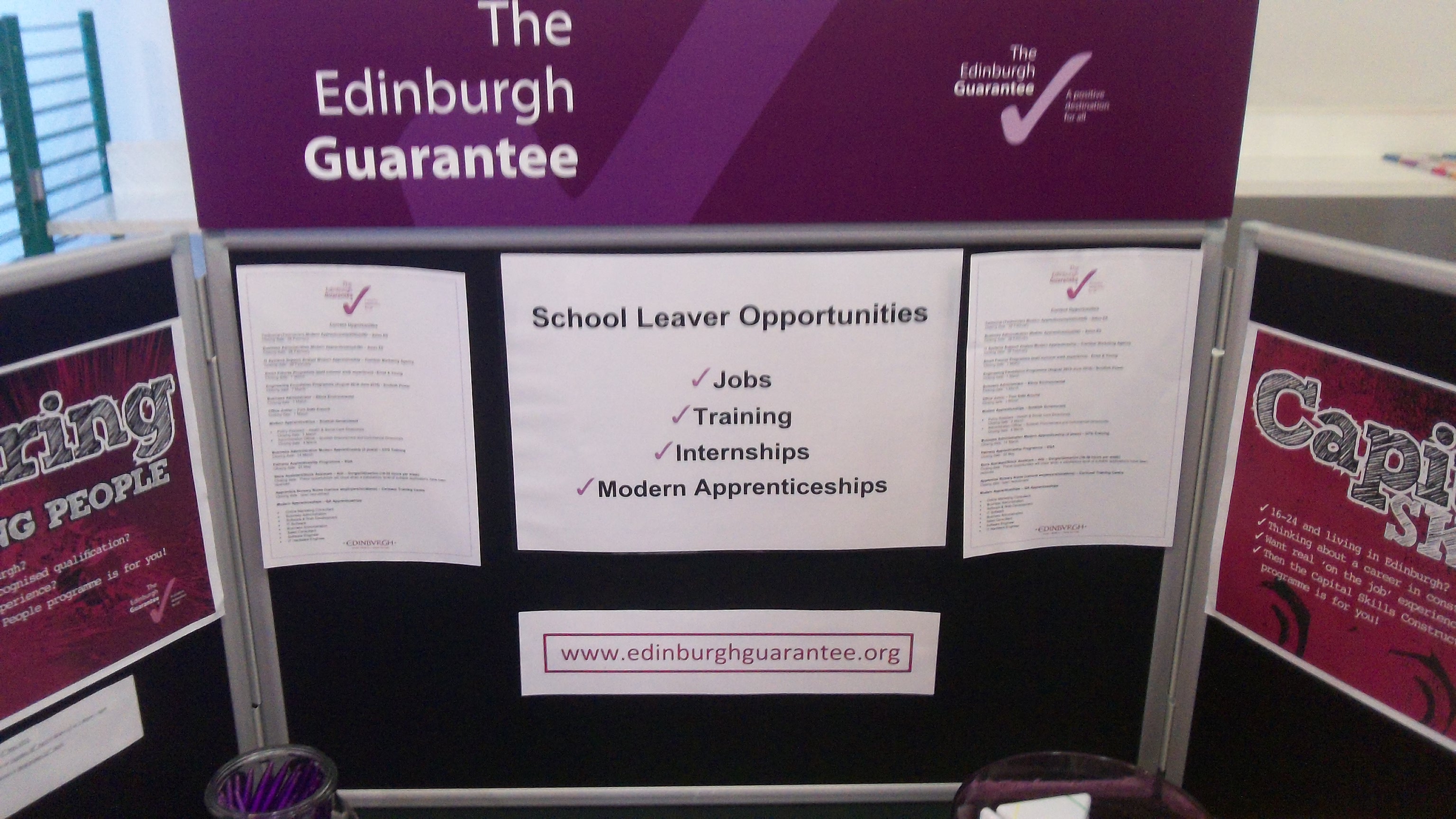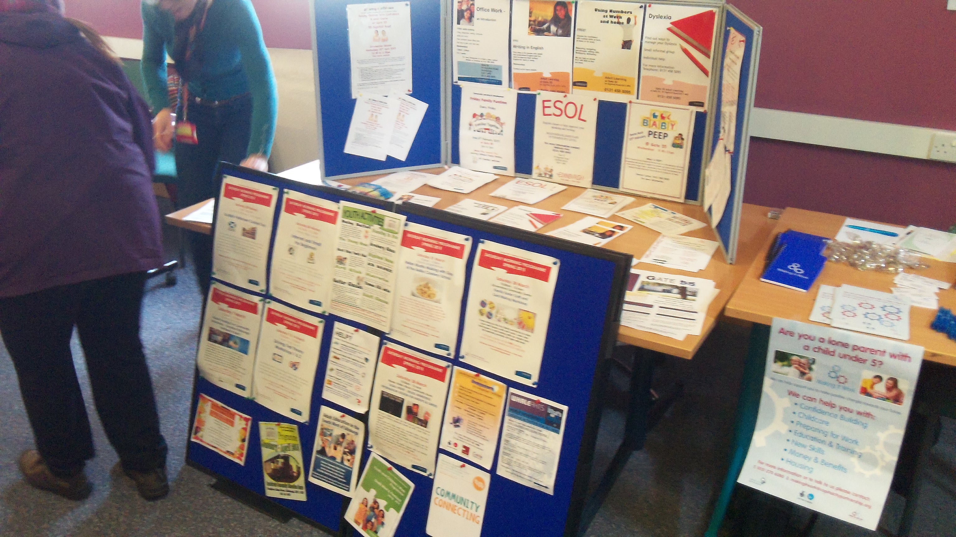 The fair ran from 10.30am – 1.30pm and was attended by numerous organisations ranging from CHAI to the Job Centre and Edinburgh College. The event was a huge success with over 100 people arriving in the first hour and visits from several nearby high schools, WHEC, St Augustines, Forresters and Tynecastle. At the time we paid the visit, at 12.30pm, around 250 people had visited the fair, with the stalls about vacancies at Edinburgh Airport and Street Soccer seeming to be particularly popular.