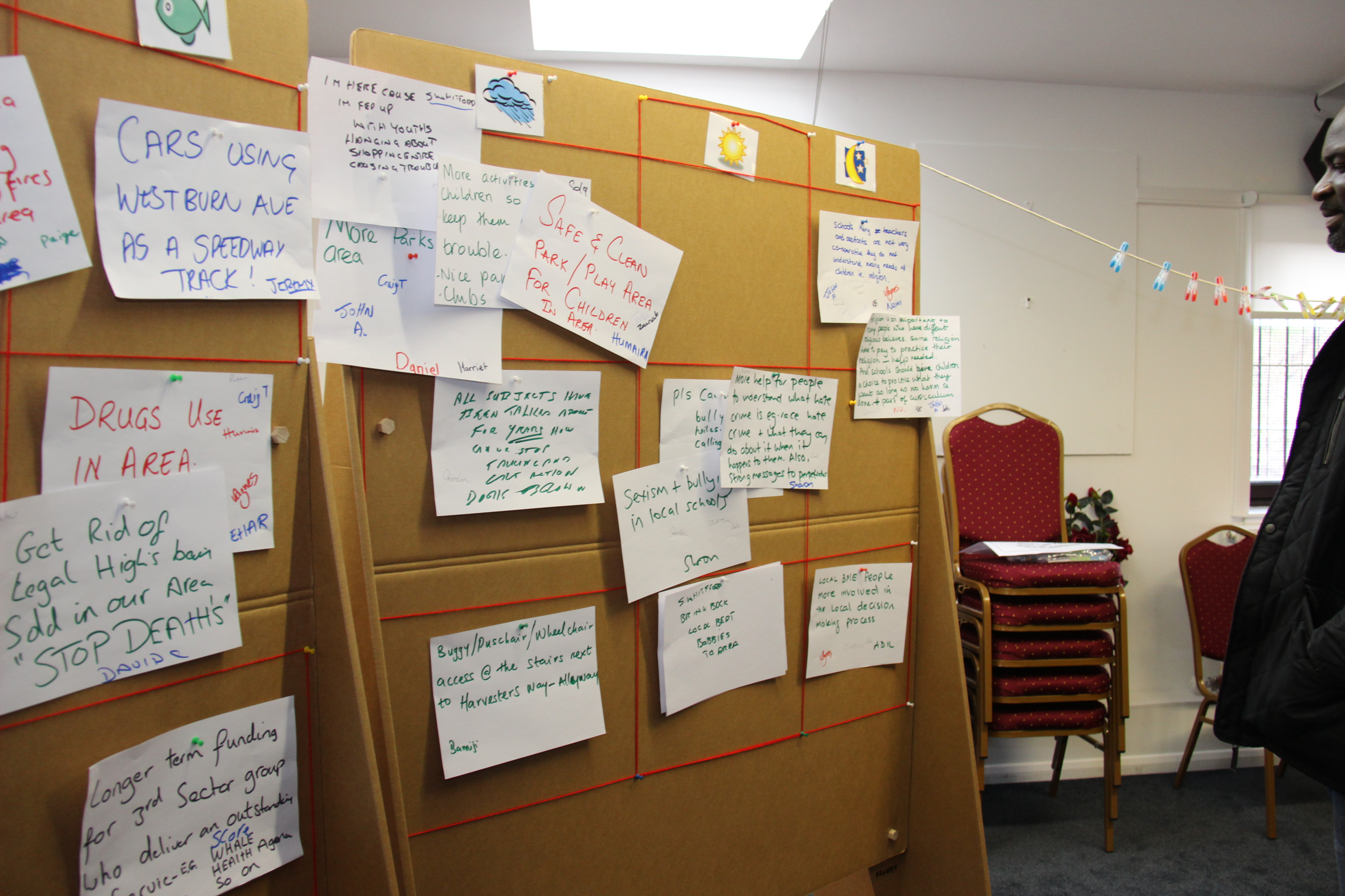 The event was well attended with 74 people attending primarily made up of Wester Hailes residents but also with people who work with local organisations. It was held at the Opens Heavens Church who kindly provided the whole venue for free. People were asked the question “What future do you want for Wester Hailes? How can you make it happen?” There was no agenda and instead participants were invited to suggest the topics which really mattered to them before the entire group split and held different discussions joining in with the topics they felt most strongly about.