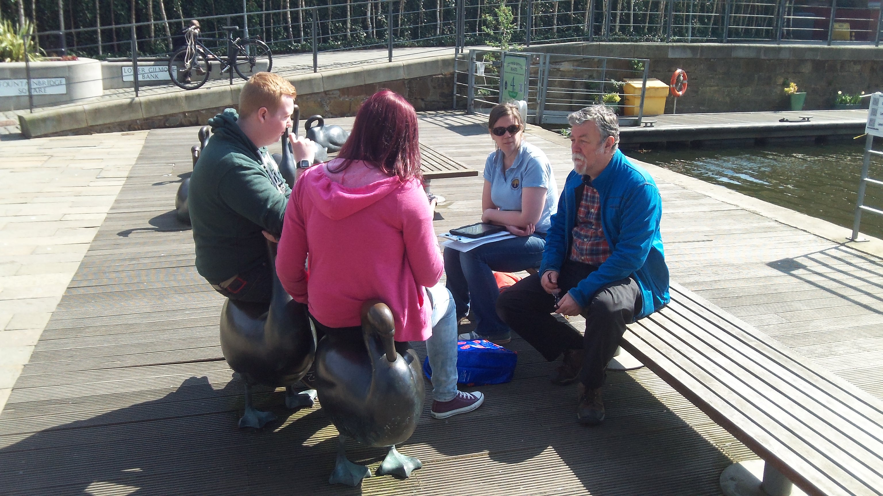 Canal college Edinburgh had a fantastic day at Edinburgh Quay interviewing local people to capture their stories of what the union canal means to them. It was amazing what we discovered, everything from dinosaur footprints to stories of working during the industrial era of the canals with smelly dirty factories lining the waterways. Thanks to everyone who came down.