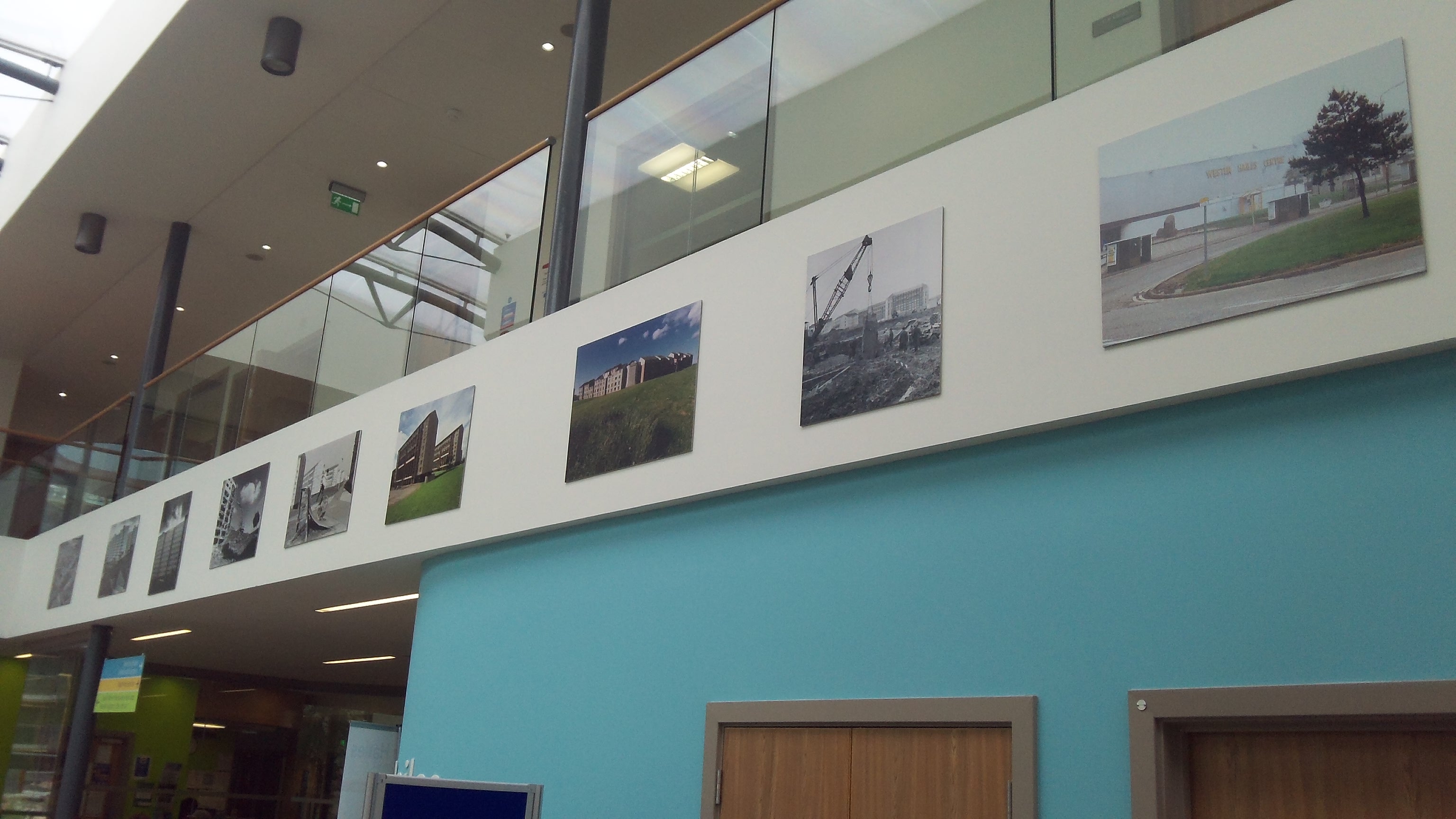 The exhibition uses photos of Wester Hailes from the Sentinel archive, SCRAN, the Edinburgh Reporter, and RCAHMS to celebrate the community, create a timeline of the area showing the construction of the flats and their destruction, and contains photos of favourite events and locations such as the Fun Run and the Venchie.