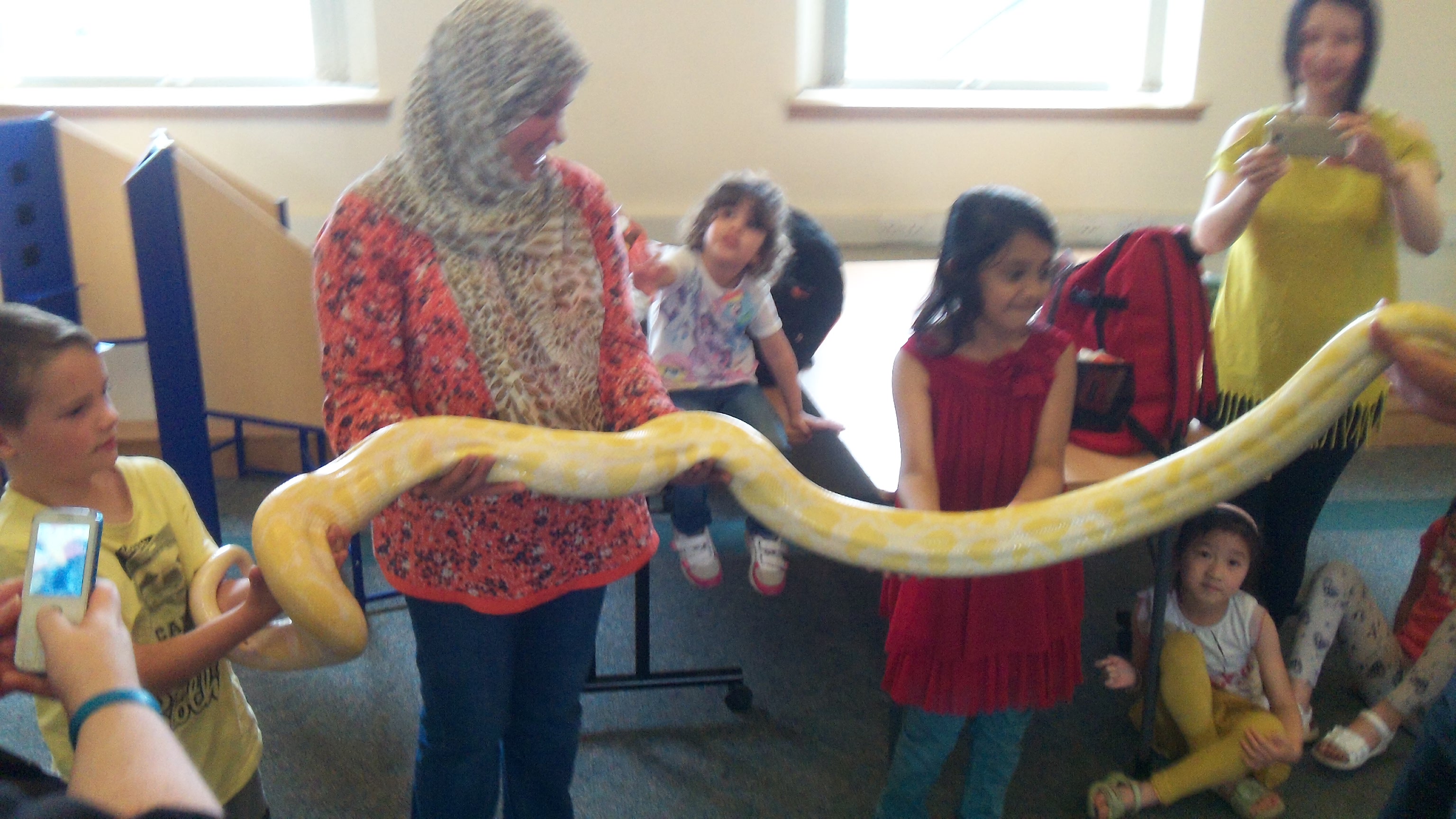 There was a wide selection of animals that the children got to interact with, holding some and petting others, including a skunk, a meerkat, a tortoise, a lizard, a tarantula, a millipede and a huge python!
