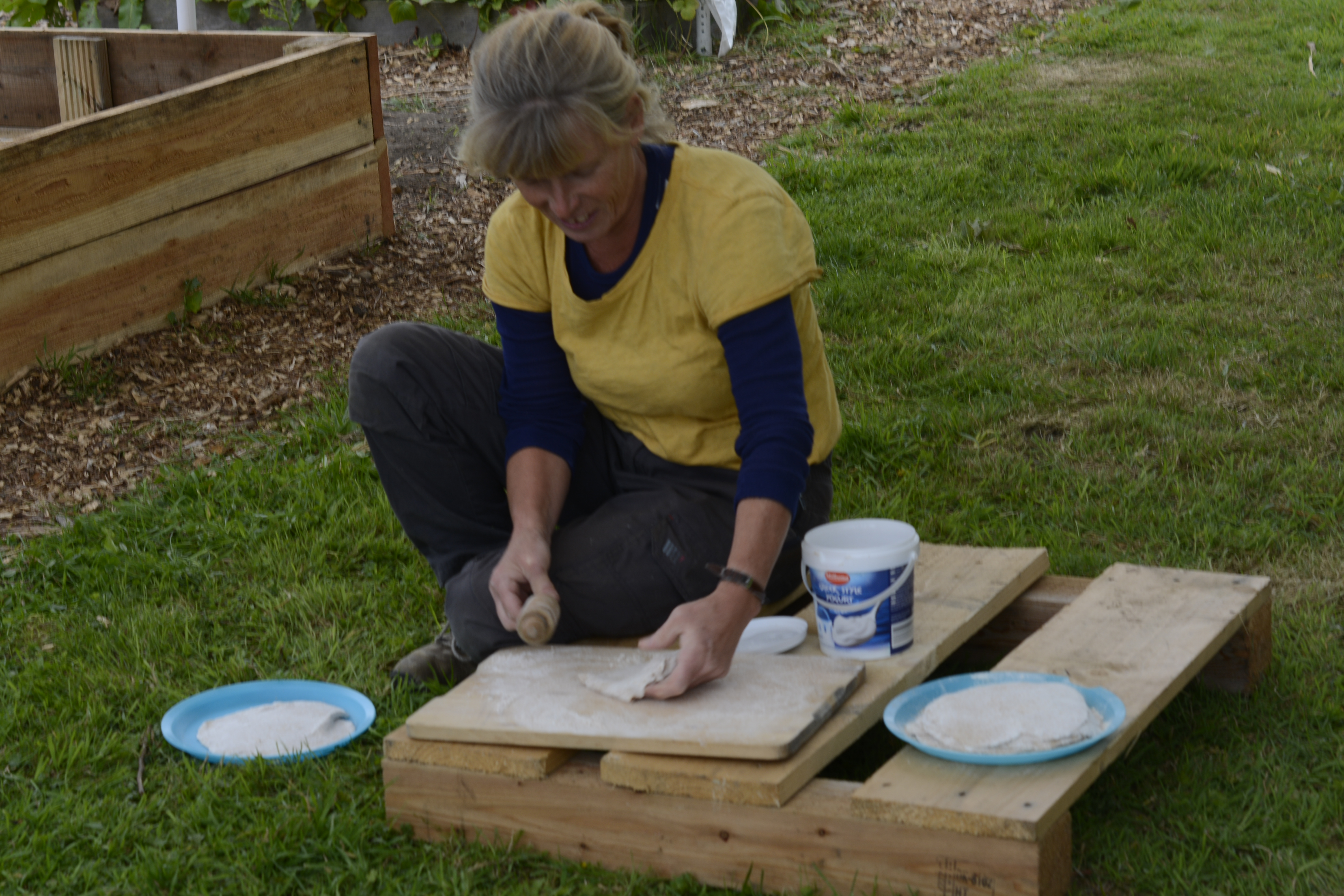 Rhona from Edible Estates was busily making wraps beside the fire to spread some rather nice yoghurt dip on.