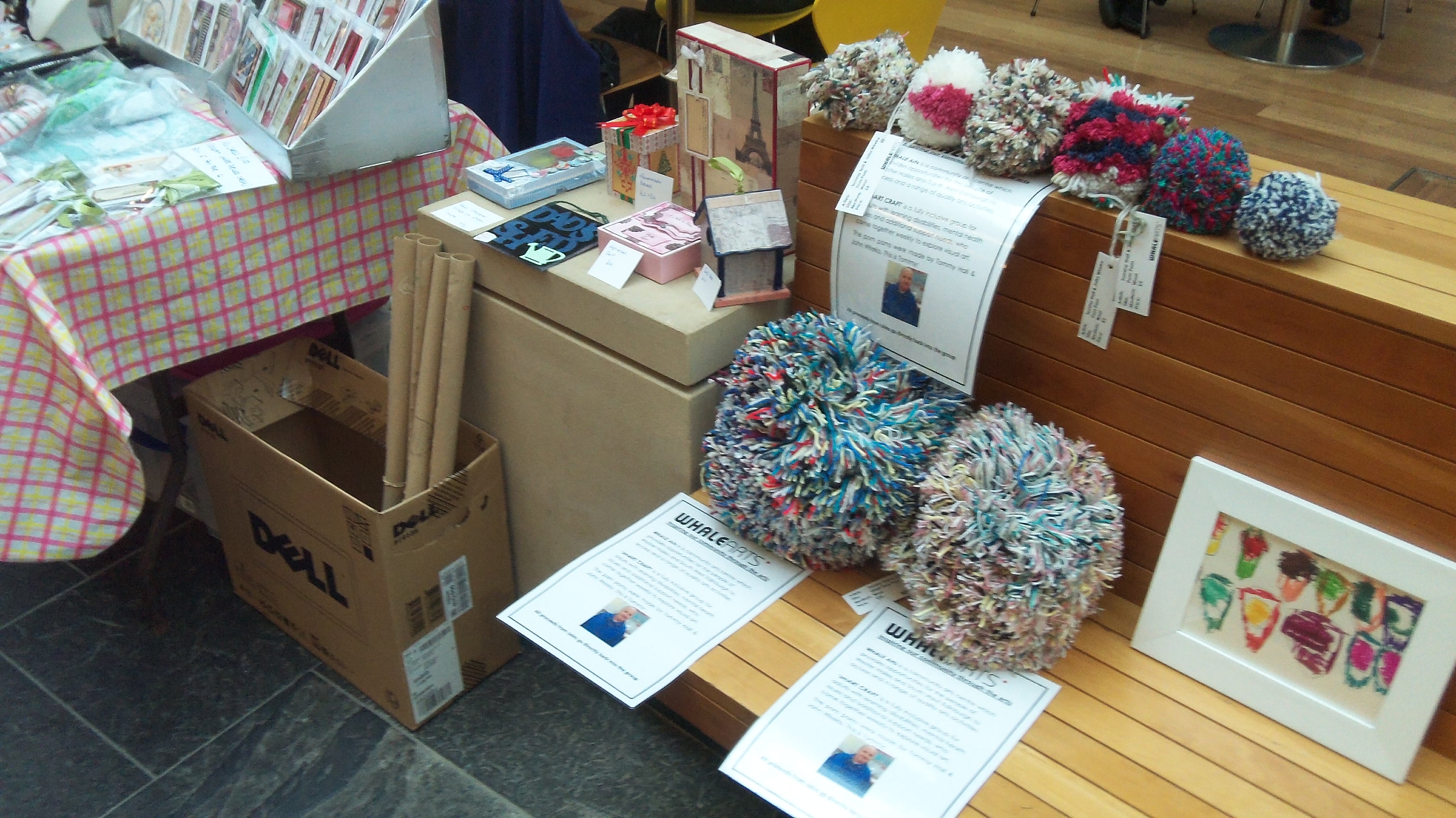 The event was attended by groups from across the city with a variety of products on sale including handmade jams, curry and wooden spoons as well as more well known groups like the Big Issue and Breast Cancer support. The local groups included Re-Union Canal Boats as well as WHALE Arts who were selling some of the artworks and pom poms created by their smART CRAFT group, and Margaret Stewart who creates her own jewelry and cards.