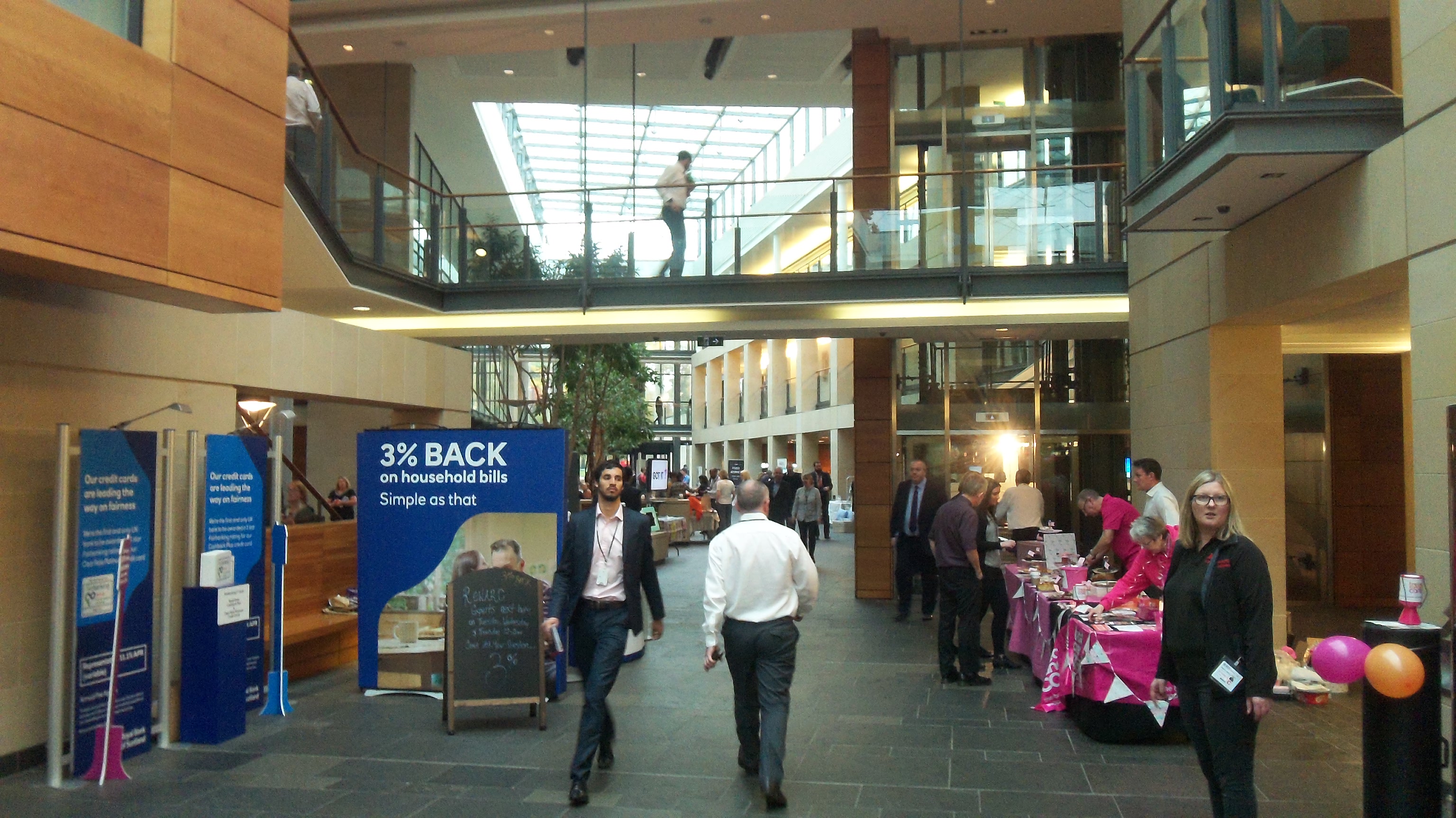 The event allowed social enterprises from across the city to set up stalls within the building in a “street” which runs through the headquarters. They were then able to sell and speak about their products and services to the over 6000 people who work in the building.