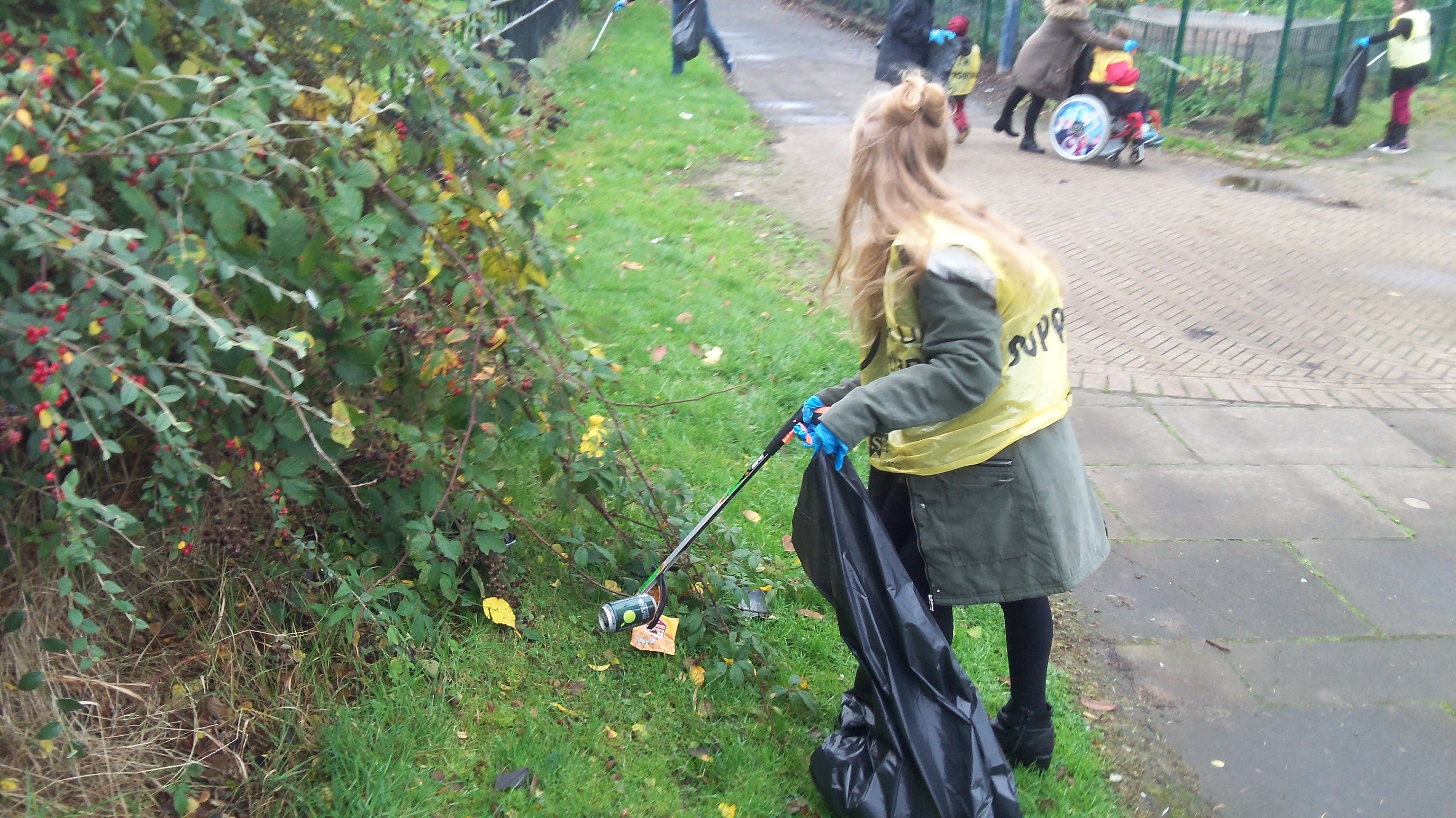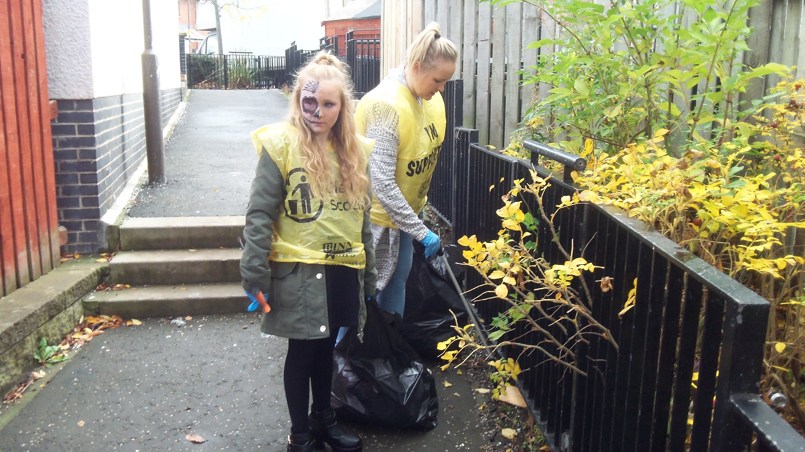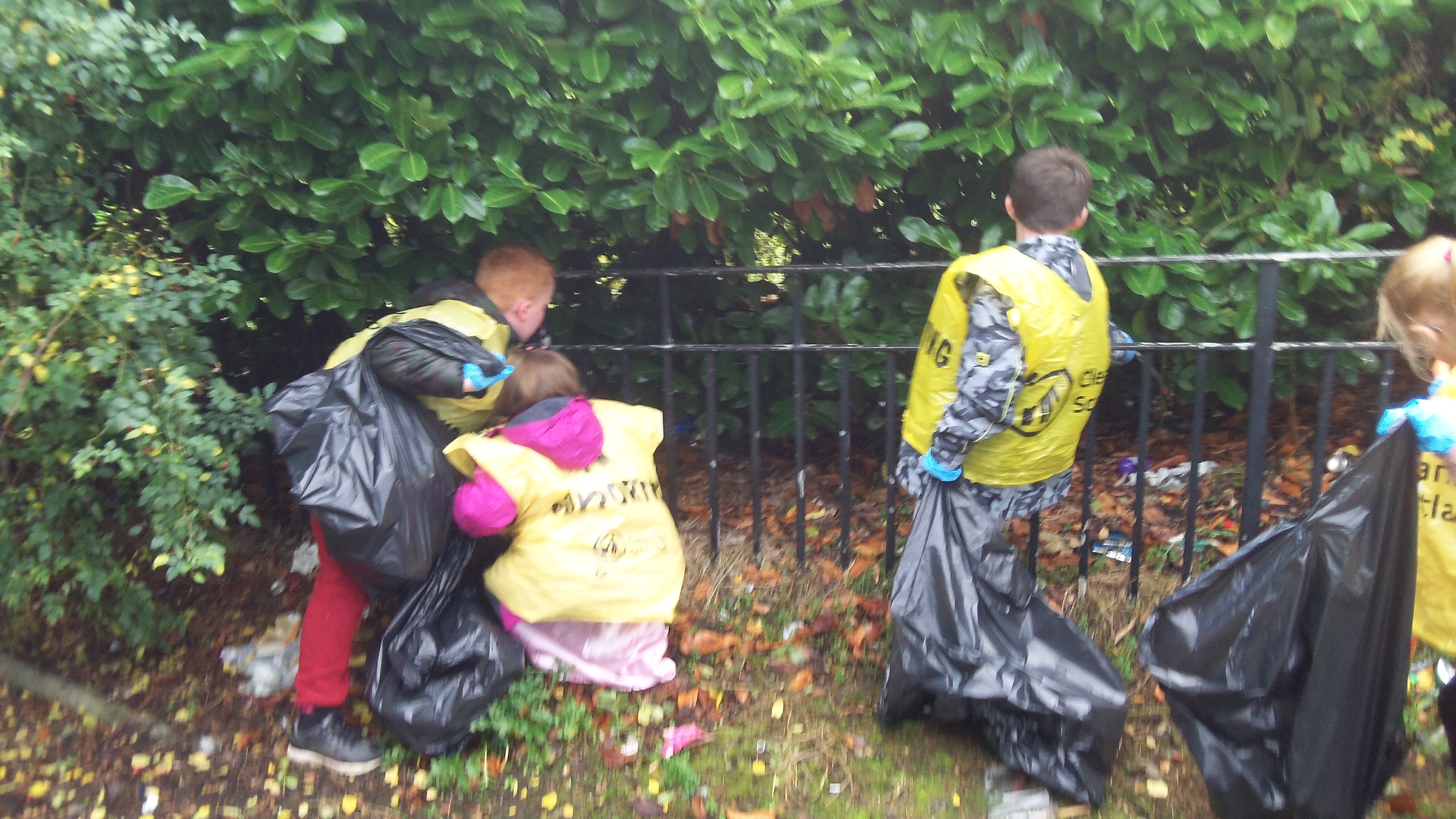 The kids, who had taken part in a dress down day at primary school and were still in their Halloween costumes covered the area, filling around 20 black bin bags with litter.