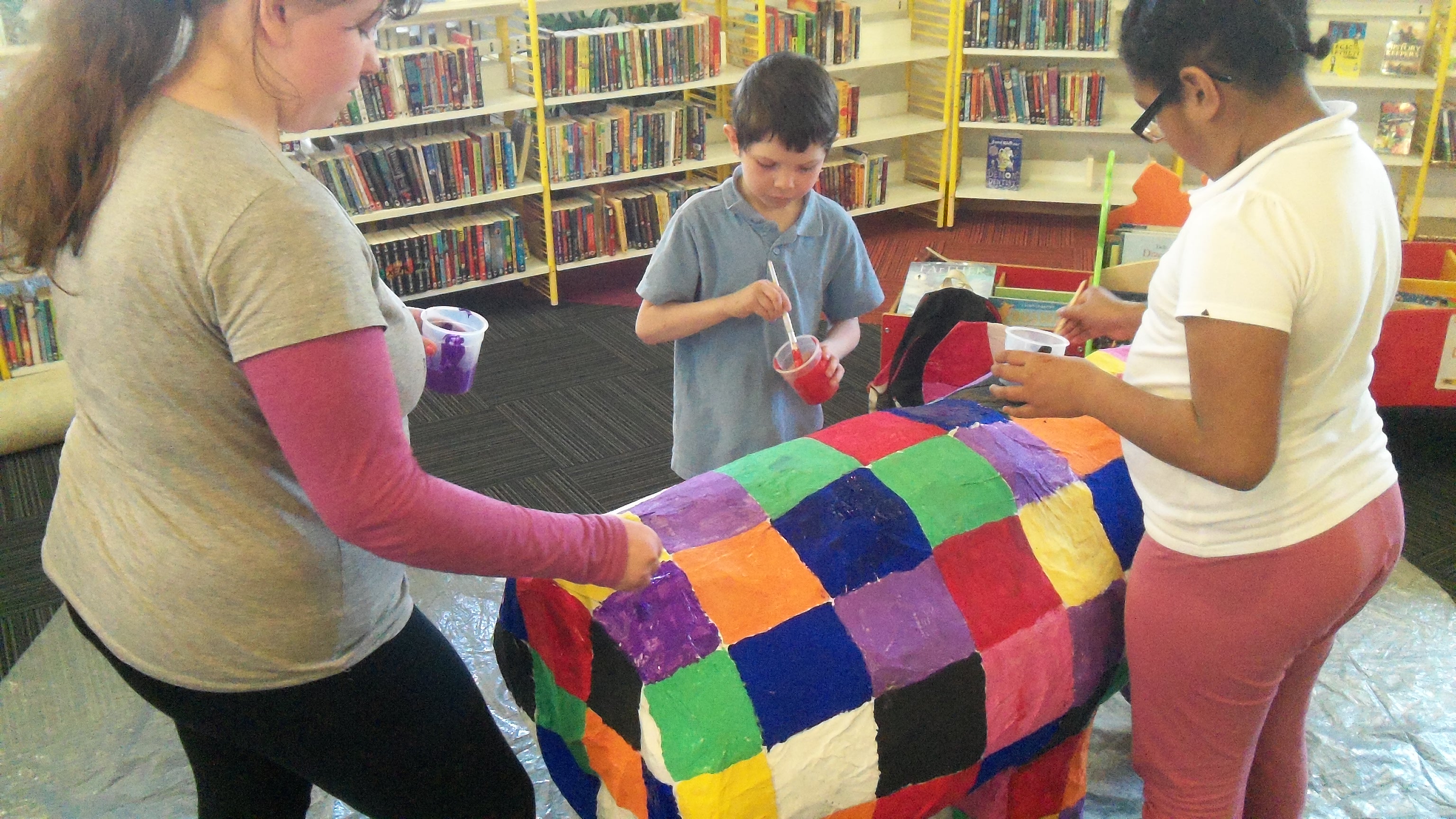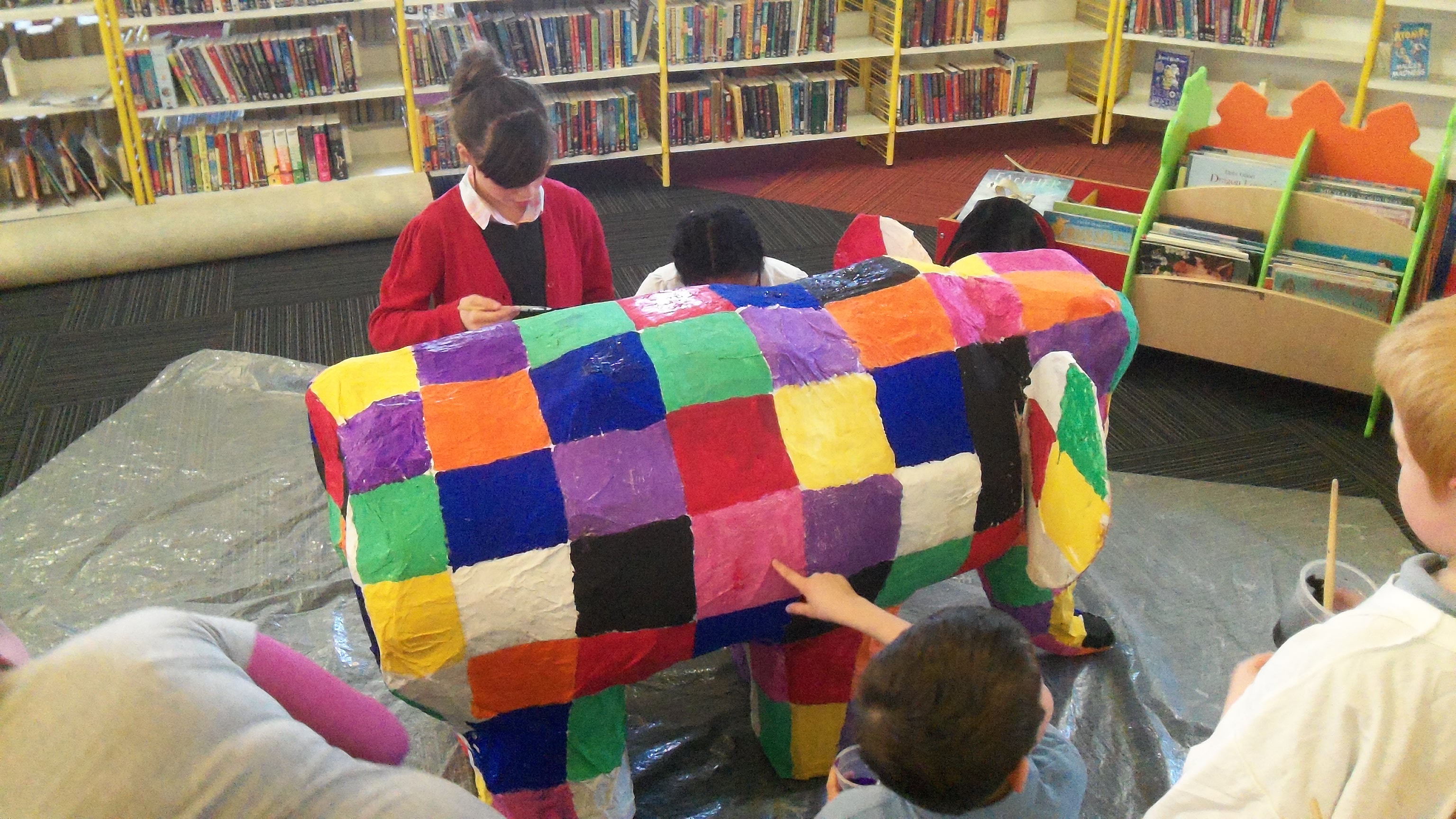 Elmer has been created over the last few weeks by local children and library staff. The original plan was to finish the elephant over the holidays but it became a bit of a bigger task than first thought. Elmer, the patchwork elephant is a character in a series of books by author David McKee.