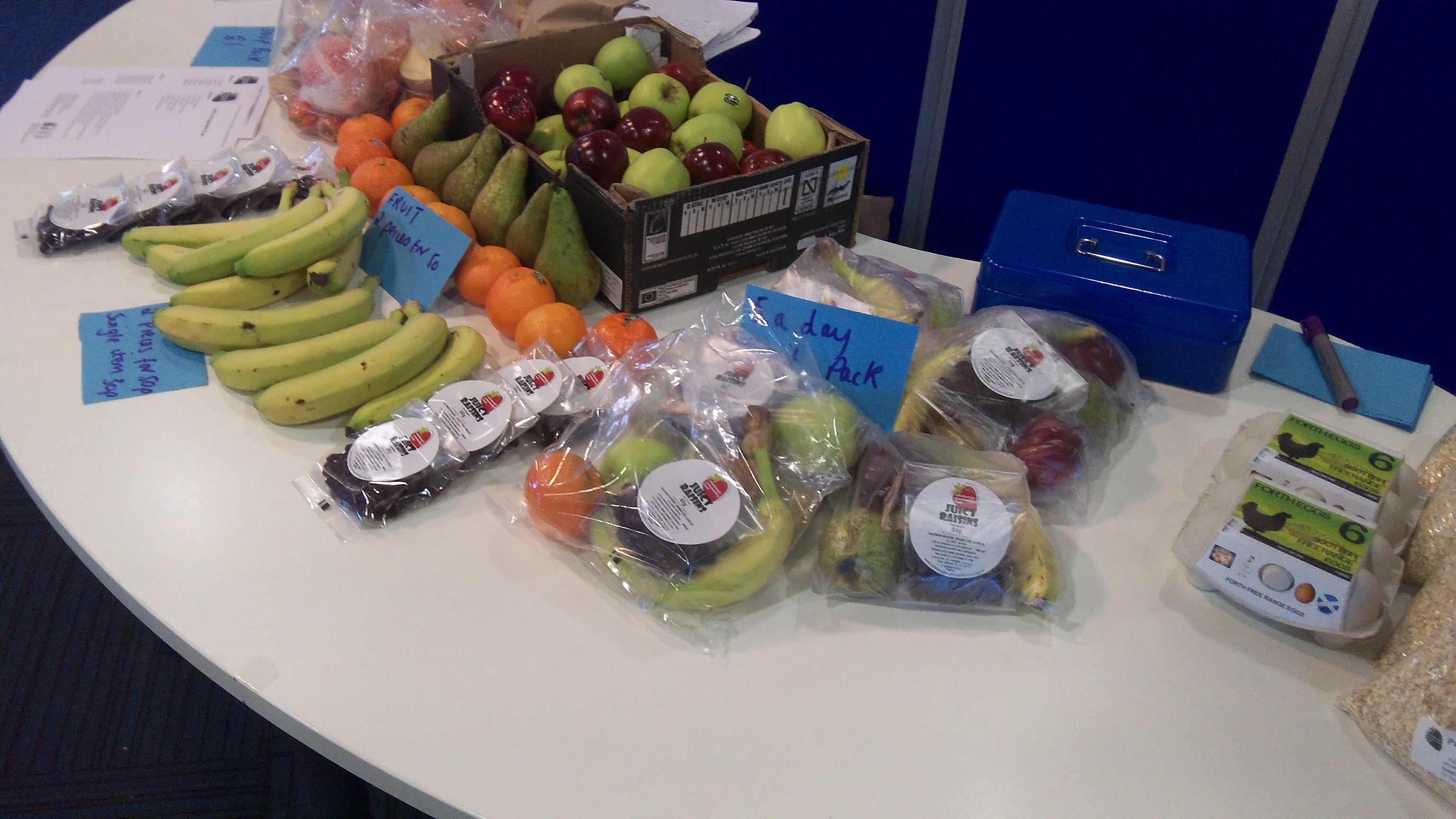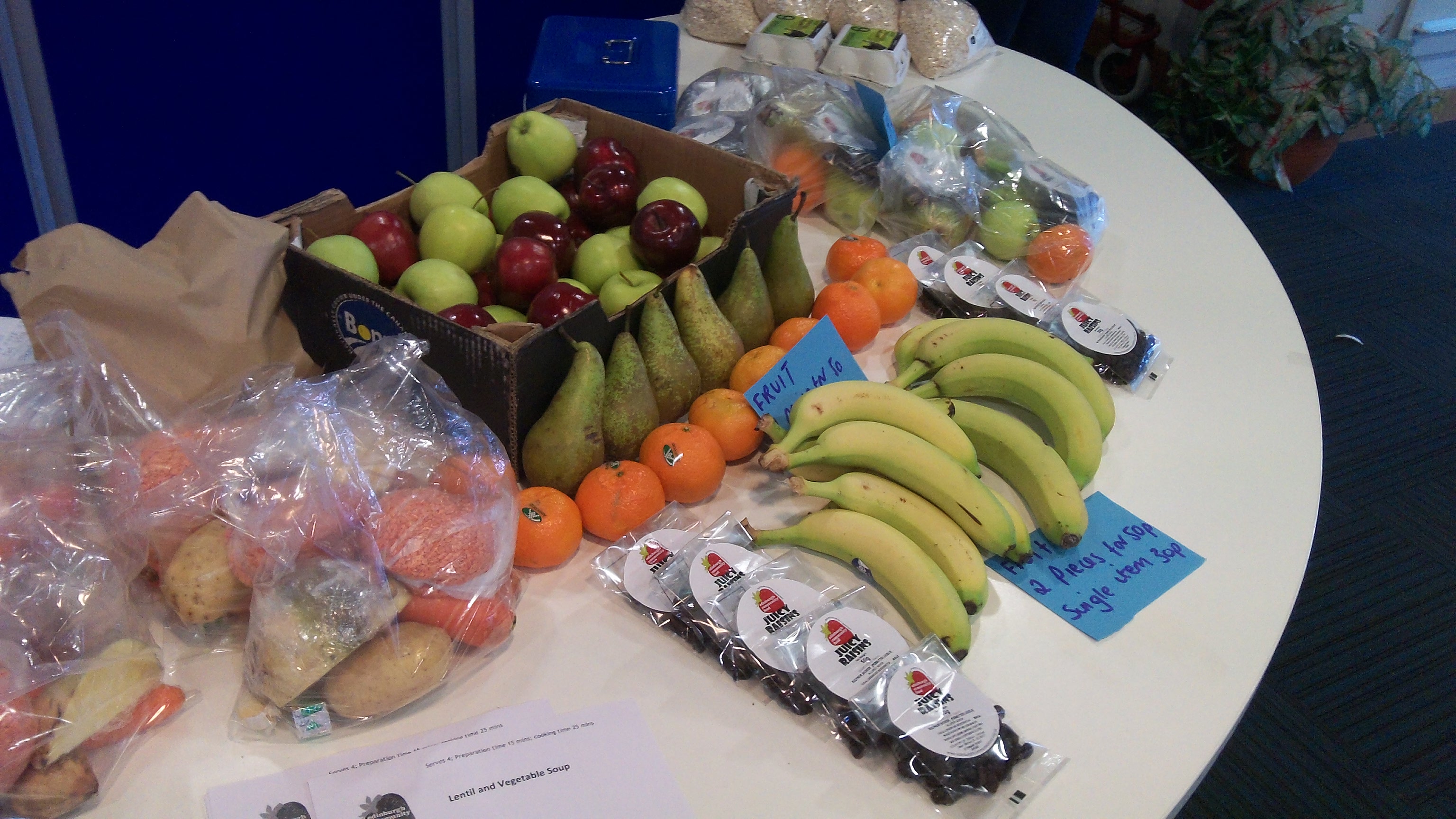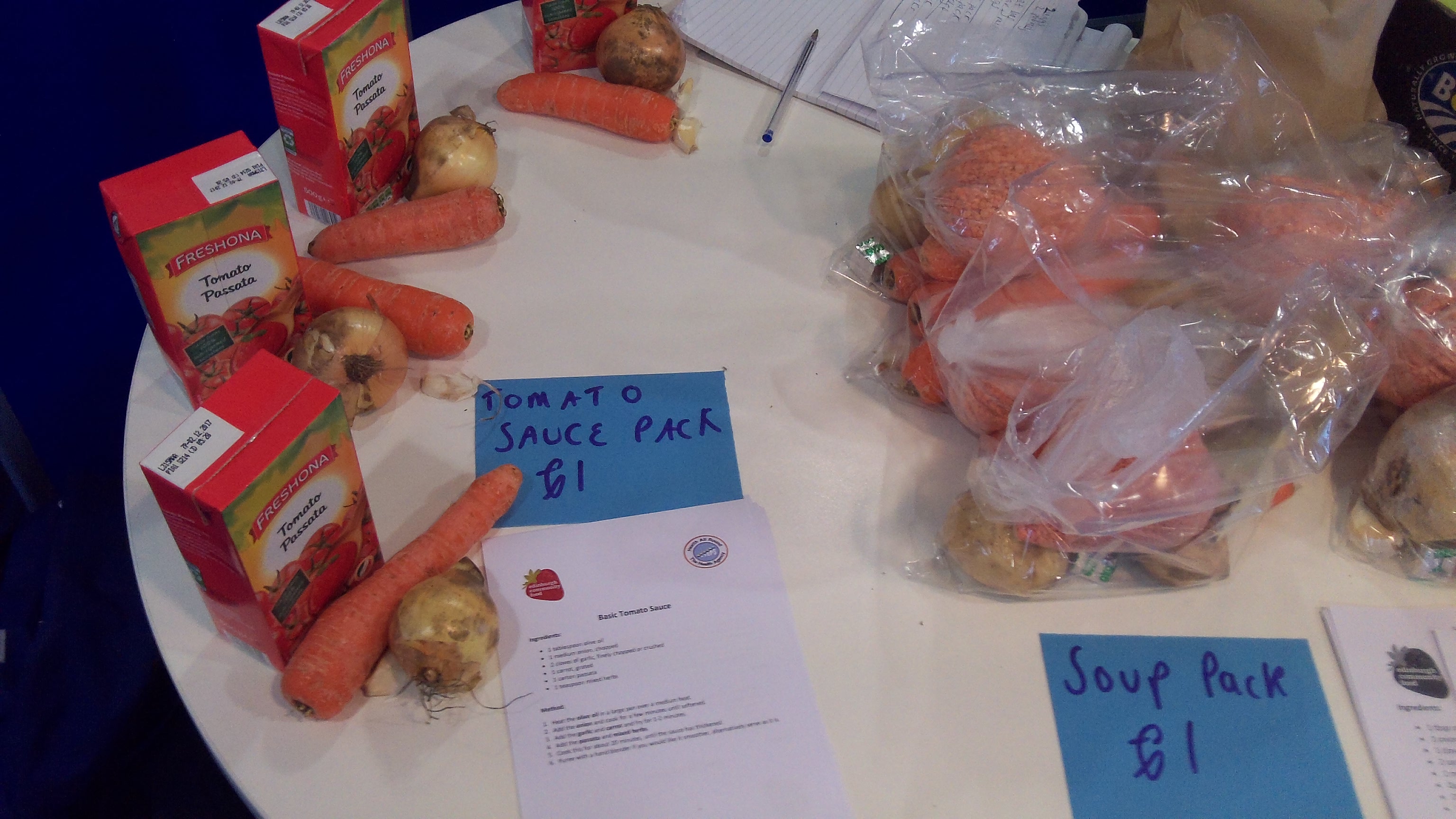 Today the shop was offering a free cup of soup for everyone that popped by and was selling the ingredients for a tomato sauce, a pack to make your own lentil and vegetable soup (for only £1), porridge and prepacked bags with your five a day.