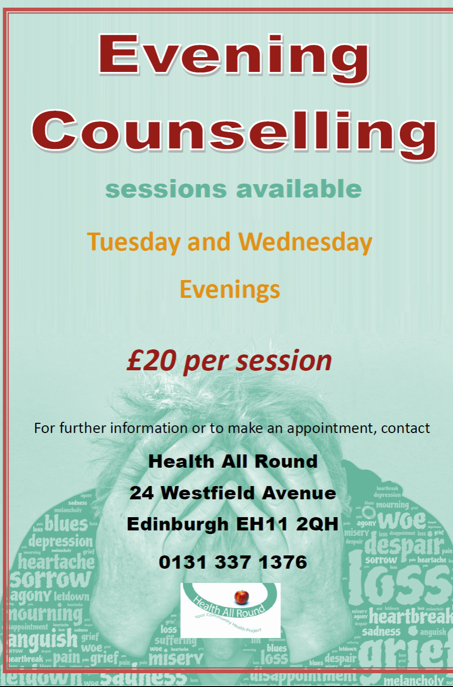 Health All Round has announced they are offering evening counselling sessions Tuesdays and Wednesdays.