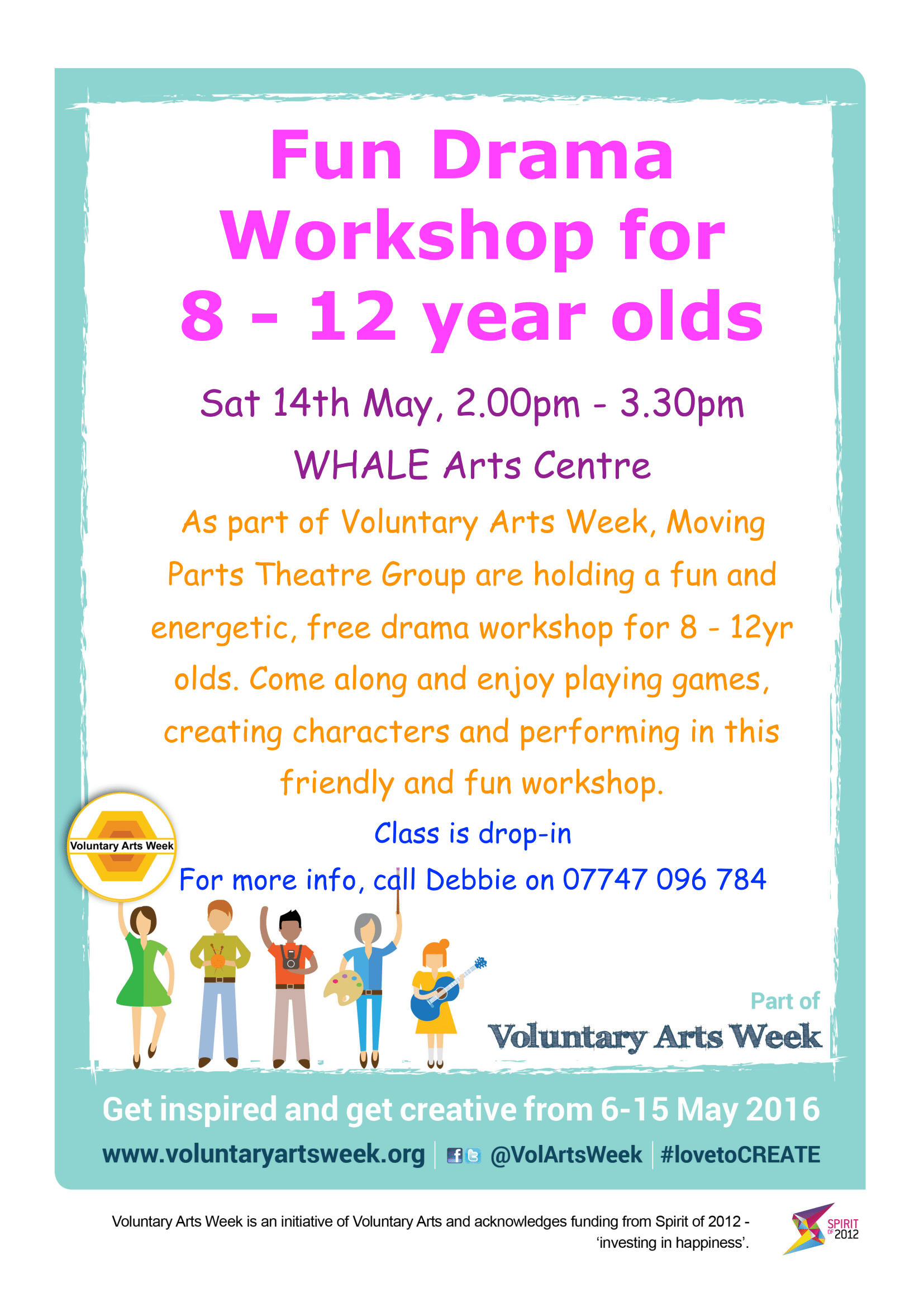 Fun Drama workshop at WHALE There will be a one off Drama Workshop, at the WHALE Arts Centre on Sat 14 May 2016 from 2.00pm...