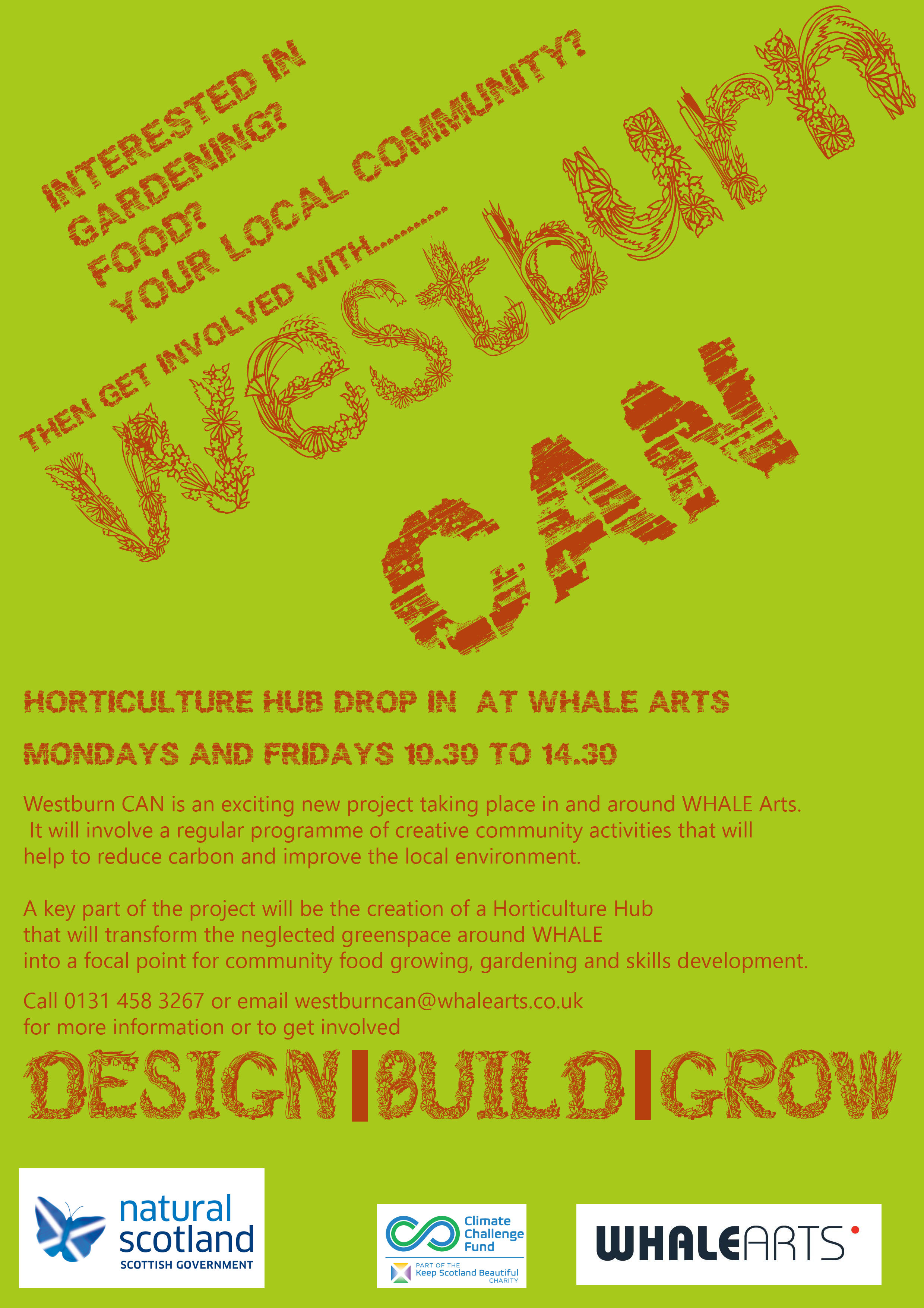 For more information contact the WHALE on 0131 458 3267 or email westburncan@whalearts.co.uk.