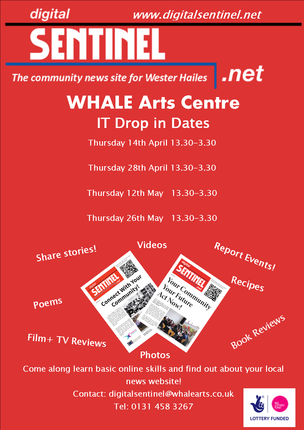 The Digital Sentinel will be holding a drop in session tomorrow at the WHALE Arts Centre, Thursday 25 May 2016, from 1.30pm-3.30pm.