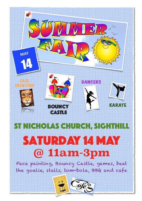 St Nicholas Church, Sighthill, will be holding their Summer Fair, this Saturday 14 May 2016, 11.00am – 3.00pm.
