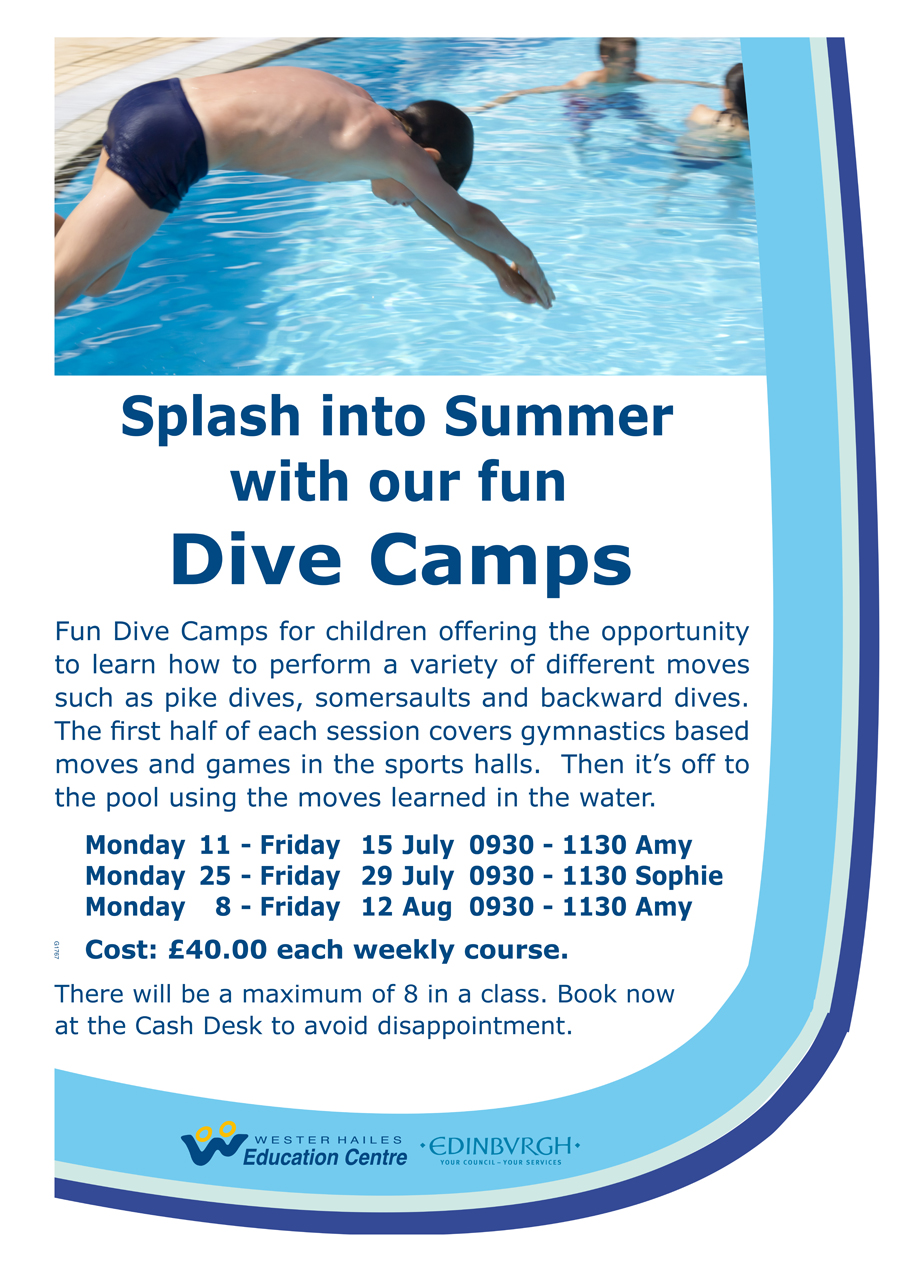 Wester Hailes Education Centre has announced that they will be holding three Summer Dive Camps this summer during the school holidays.