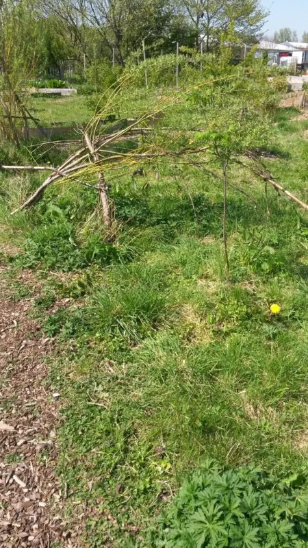 It is thought the vandalism took place on the weekend beginning Friday 6 May 2016 and has continued over the warmer evenings. The vandals snapped one of the new fruit trees, uprooted hand-weaved willow tree circles, destroyed a willow arch and pulled some of the new seedlings out of the nursery beds. We have added photos of the damage at the end of this article.