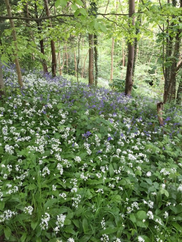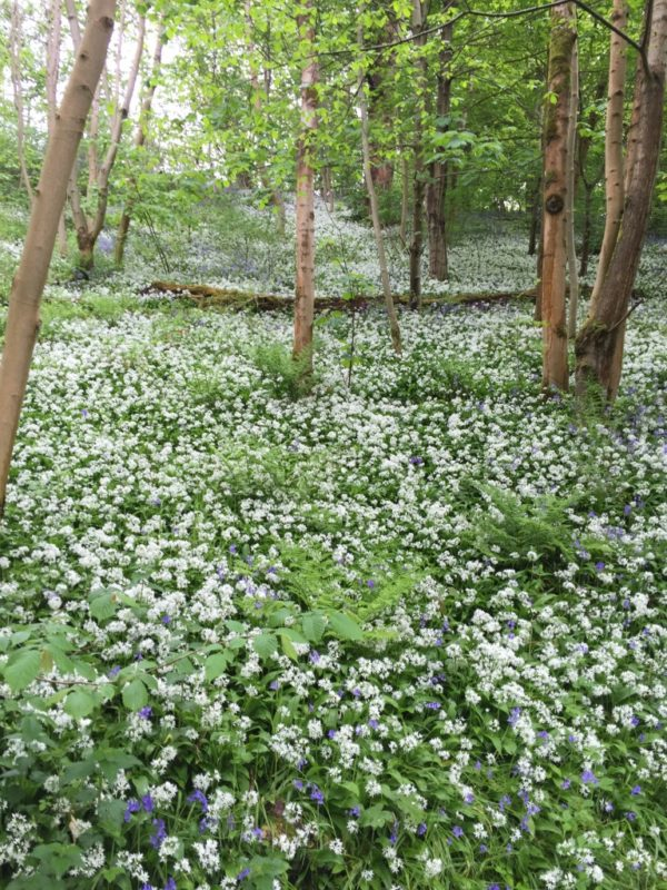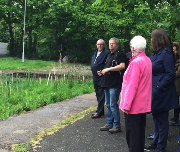 May was an ideal time to visit the woodlands which were full of bluebells and wild garlic. Richard Bolton, the Community Woodland officer showed us round, explaining that the area had formed part of the Castlemilk House estate. The house was finally demolished in 1969, and the historic woodlands were neglected for decades. The Cassiltoun Trust worked with other partners including the Forestry Commission, to clear and conserve the woods as well as improving access and encouraging the local community to become involved in looking after the woods. As we walked through the tree-lined paths seeing the flowers and hearing all the bird song, it was hard to believe we were in the middle of Glasgow, surrounded by housing. We even saw a heron!