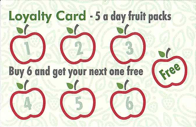 The card means that anyone who buys six five a day fruit packs will get their next one free.