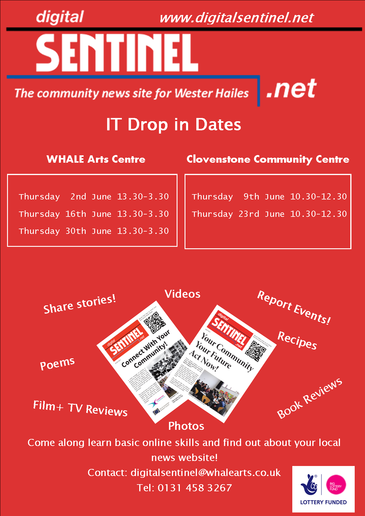 The Digital Sentinel will be holding a drop in session tomorrow at the WHALE Arts Centre, Thursday 2 June 2016, from 1.30pm-3.30pm.