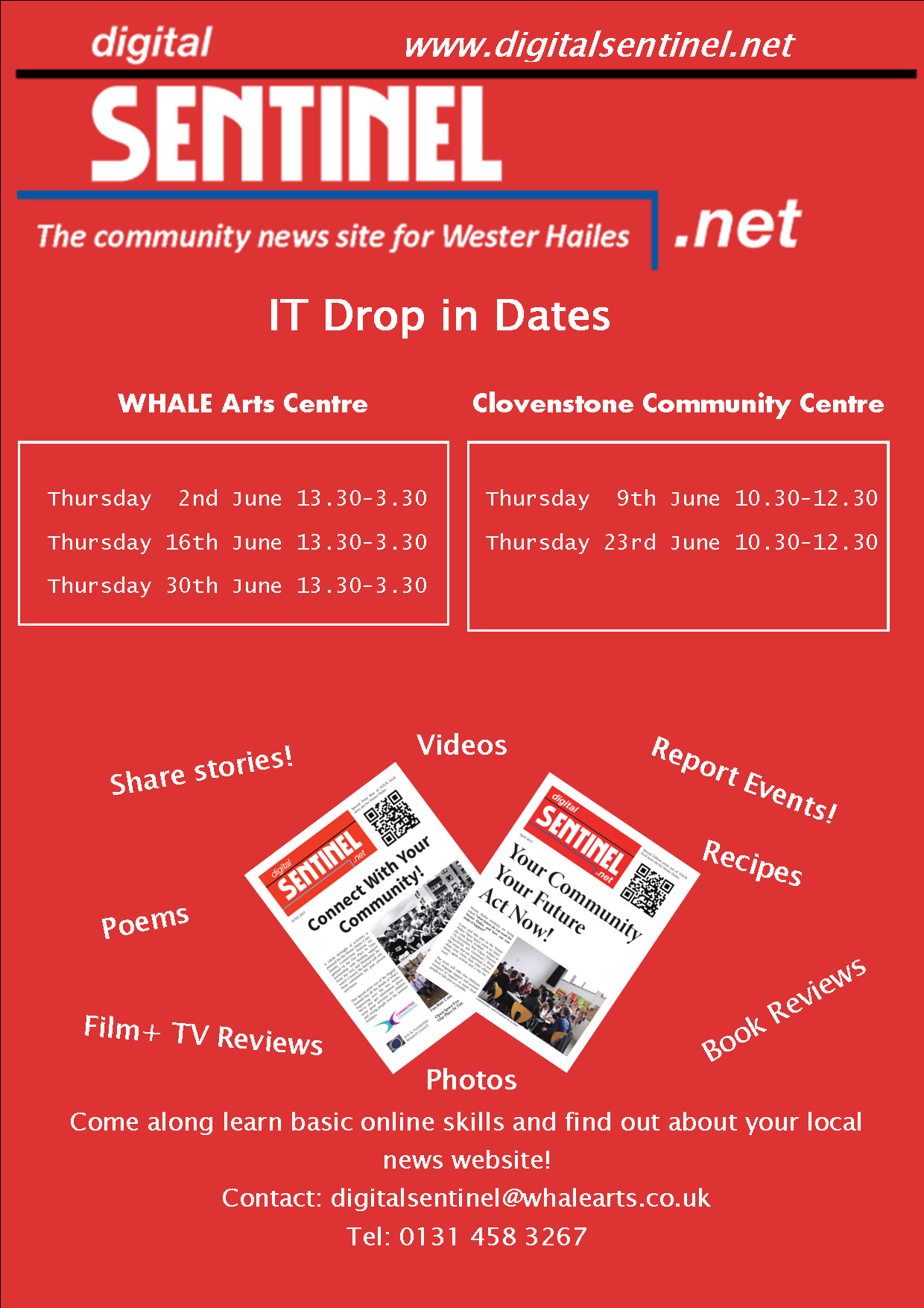 The Digital Sentinel will be holding a drop in session tomorrow at the WHALE Arts Centre, Thursday 30 June 2016, from 1.30pm-3.30pm.