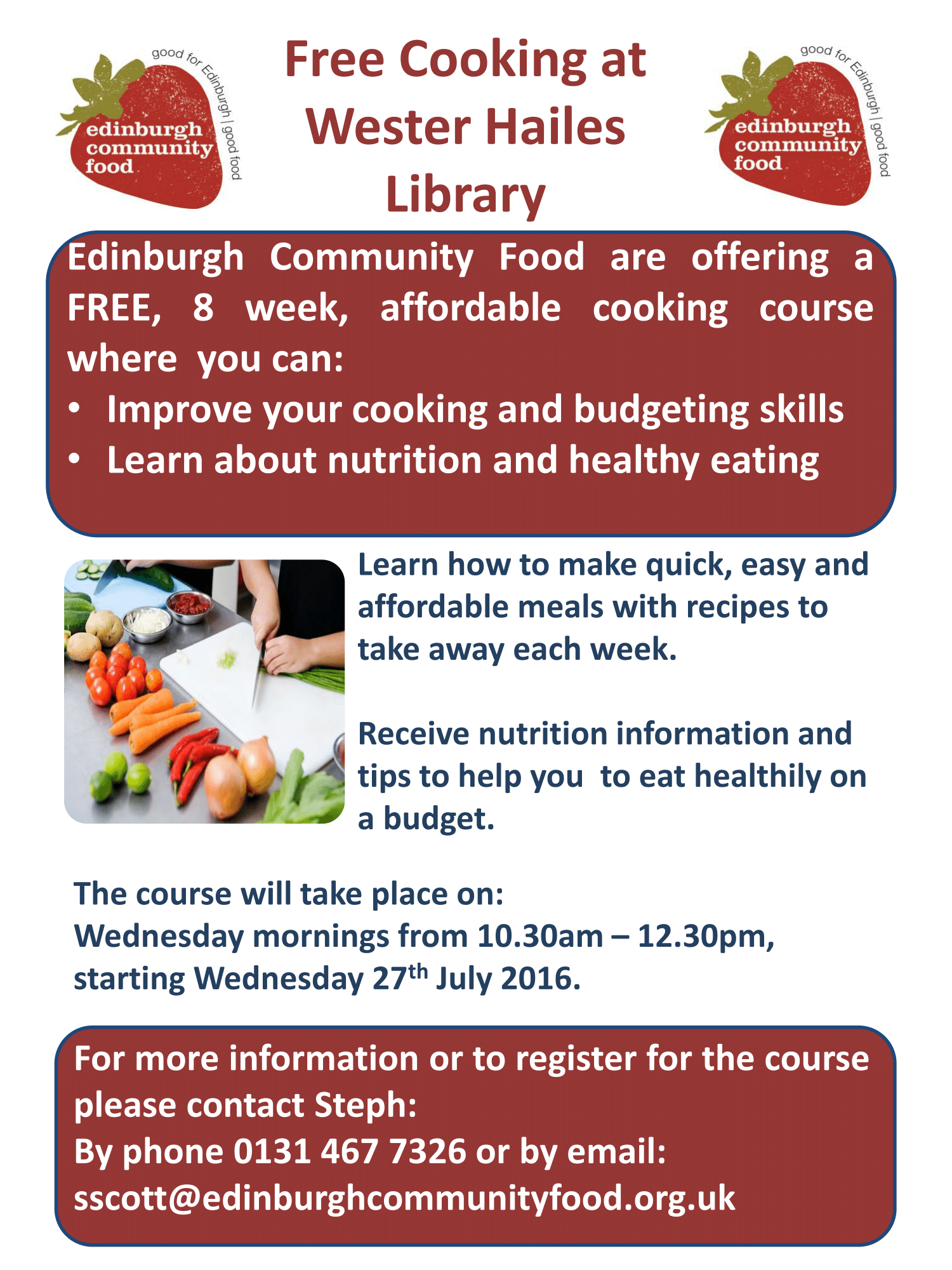 For more information or to book your place contact Steph on 0131 467 7326 or email sscott@edinburghcommunityfood.org.uk.