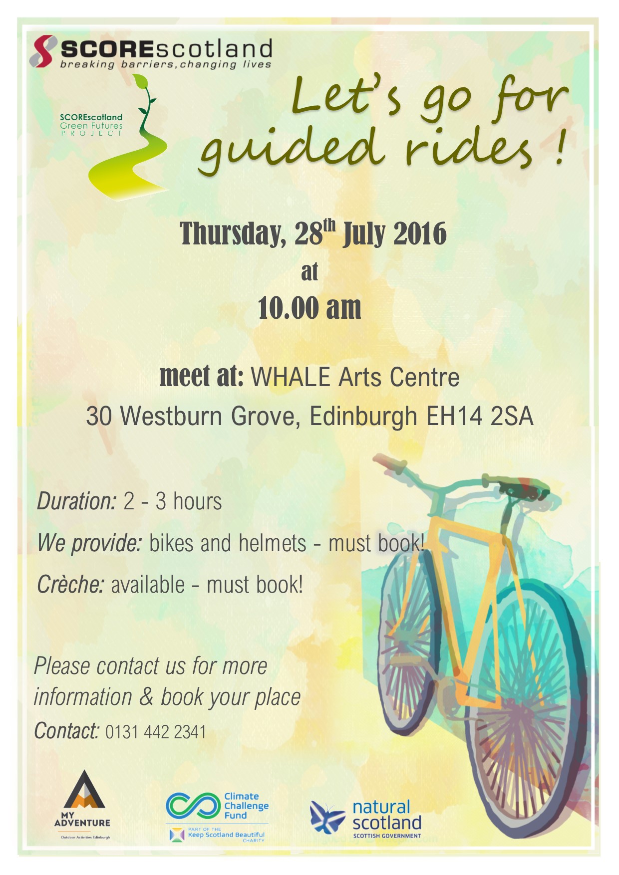 SCOREscotland’s Green Futures Project has partnered with My Adventure and has organised a guided cycle ride on Thursday, 28 July 2016 at 10.00am.