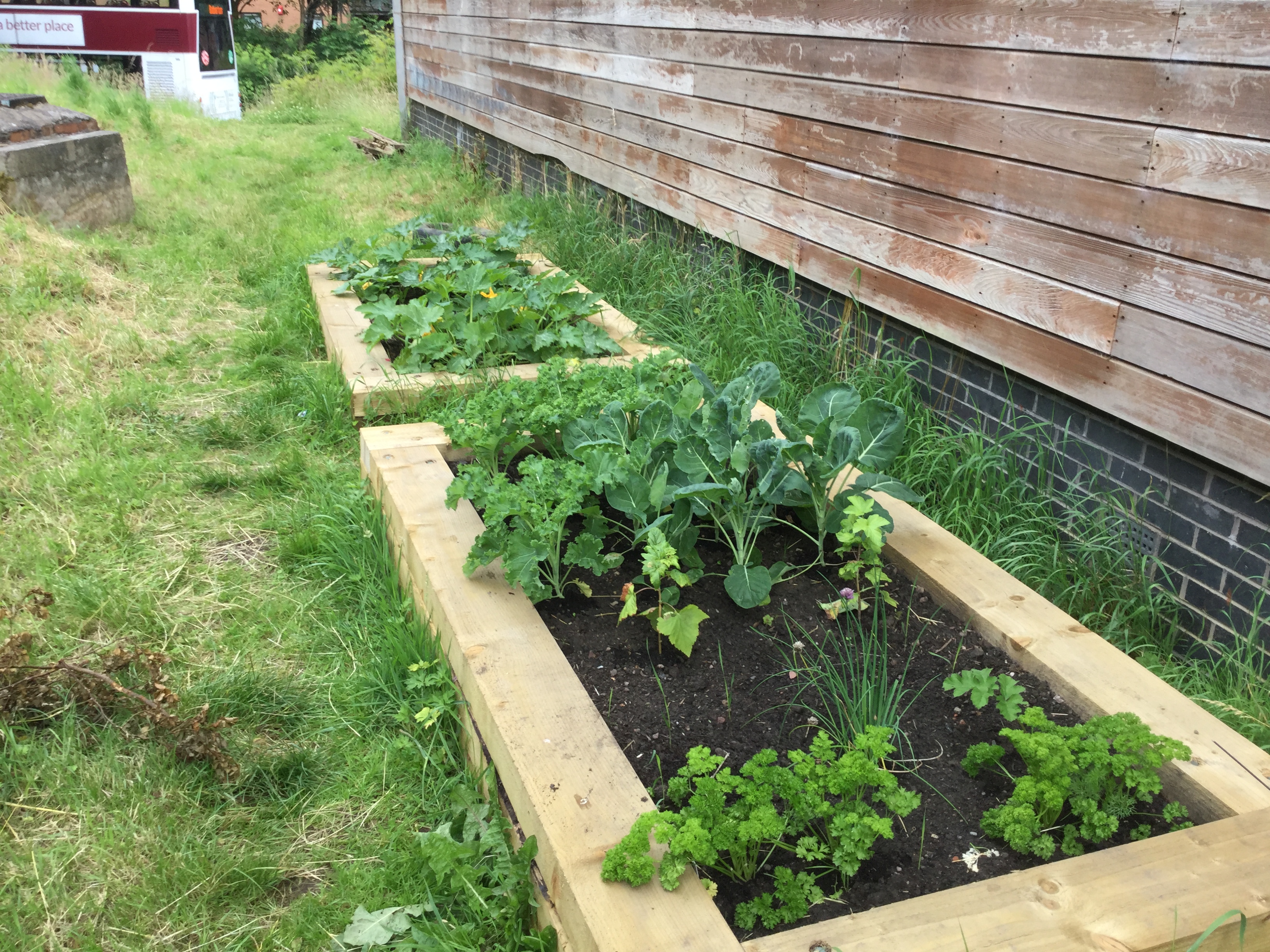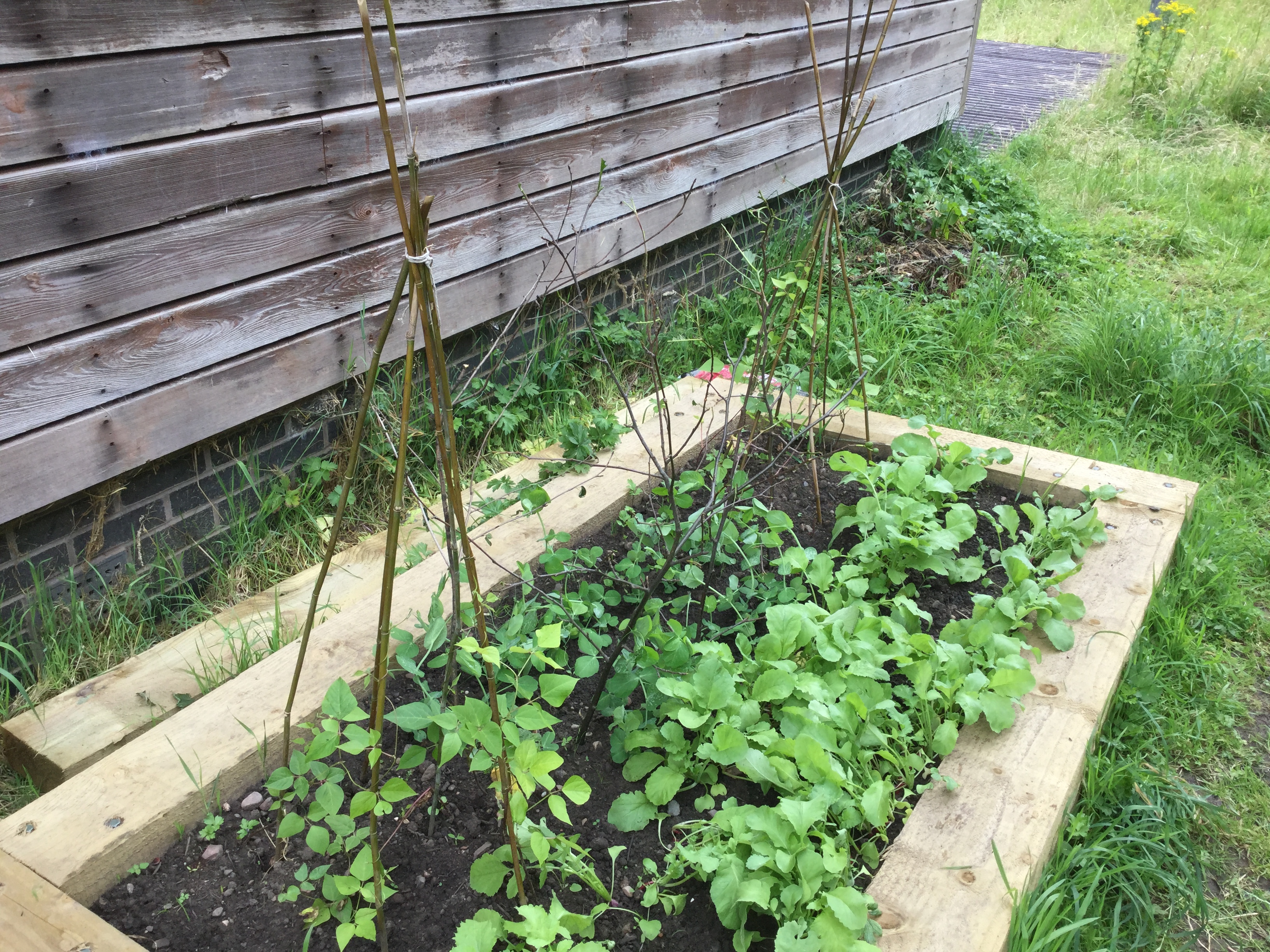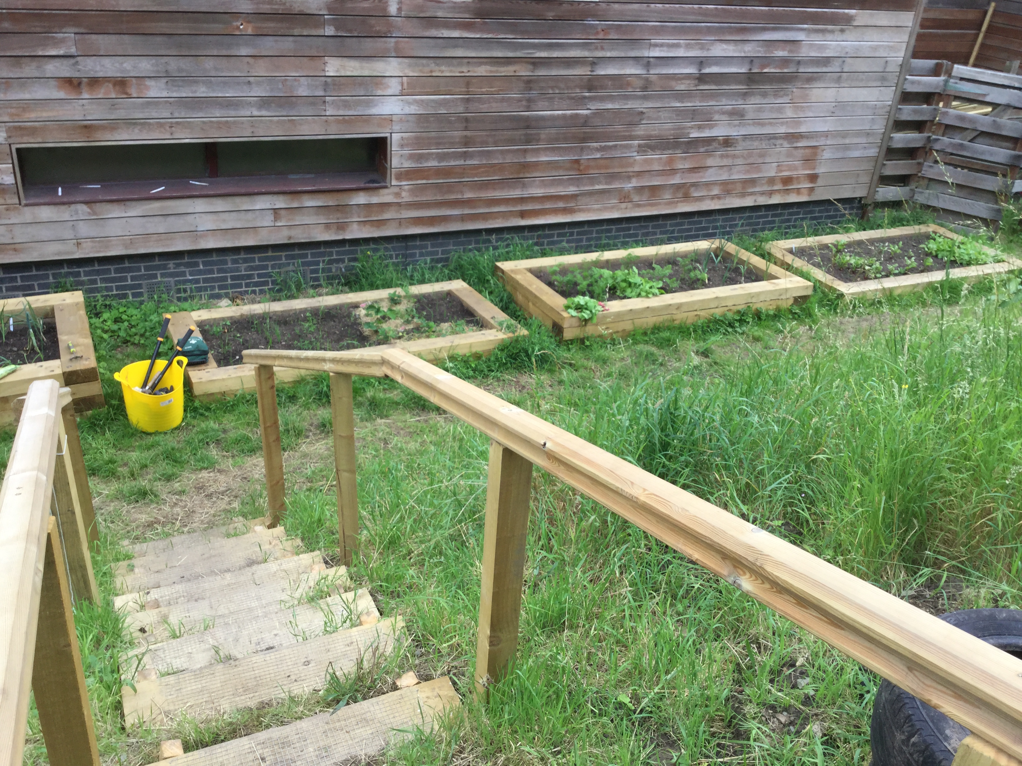 The group have made a lot of progress over the past few weeks with raised beds, benches and even a new set of stairs rapidly appearing behind the building, not to mention the assortment of edible goodies which are now sprouting up everywhere!