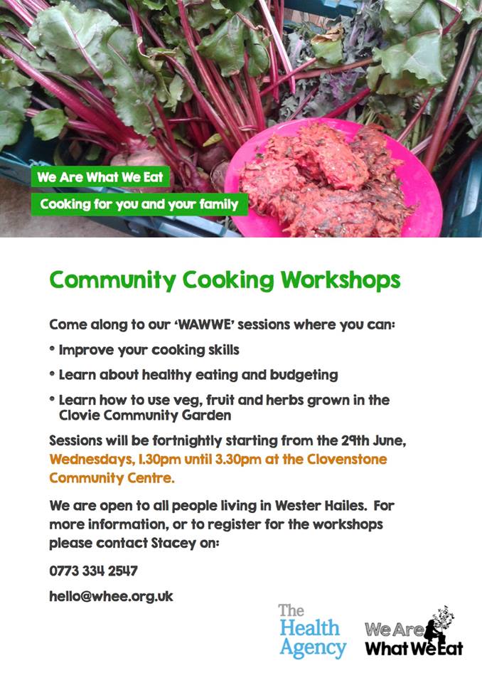 Wester Hailes Edible Estates would like to invite you along to the first of their fortnightly ‘We Are What We Eat’ cooking sessions on Wednesday at 1.30pm at the Clovenstone Community Centre.