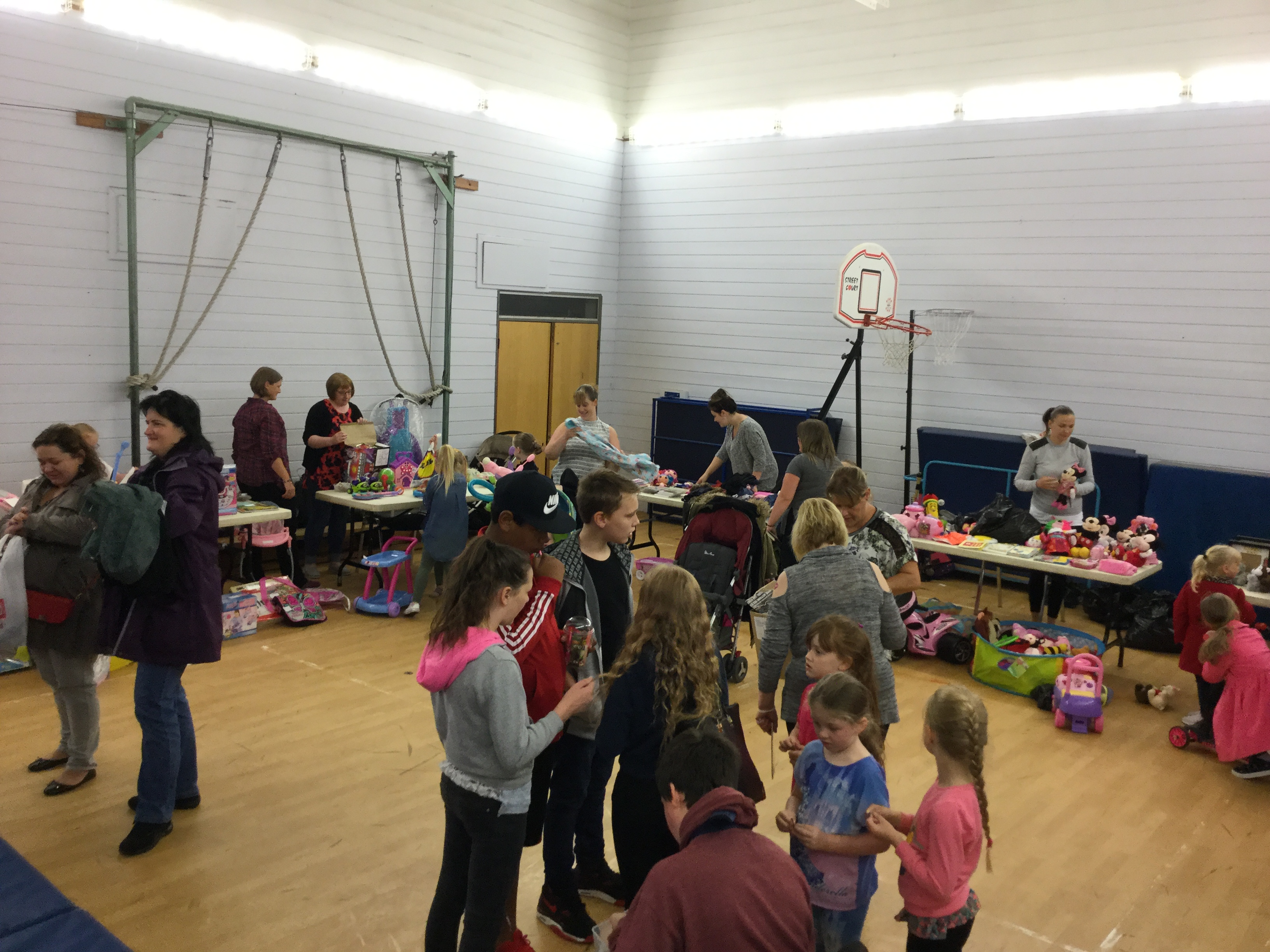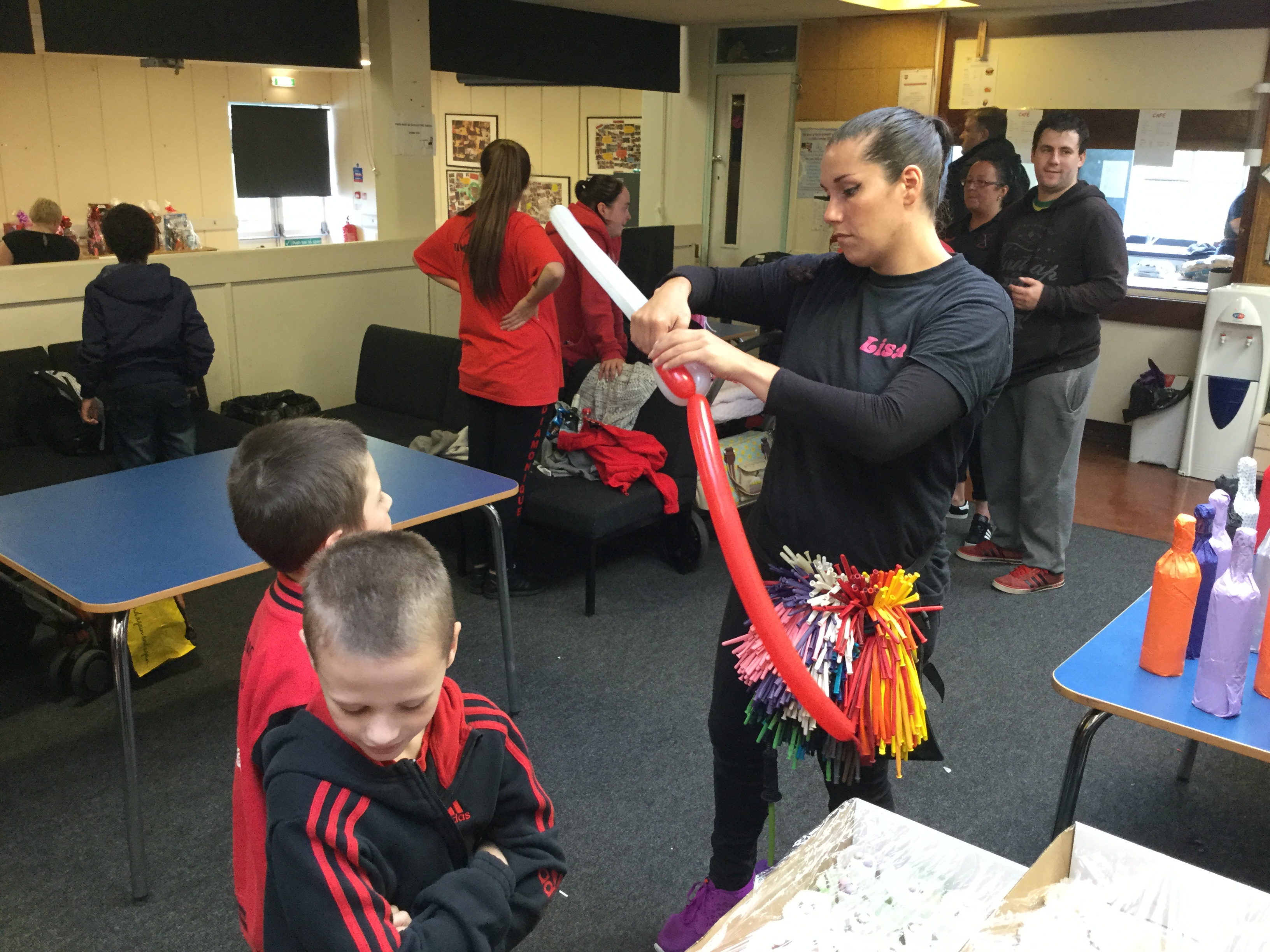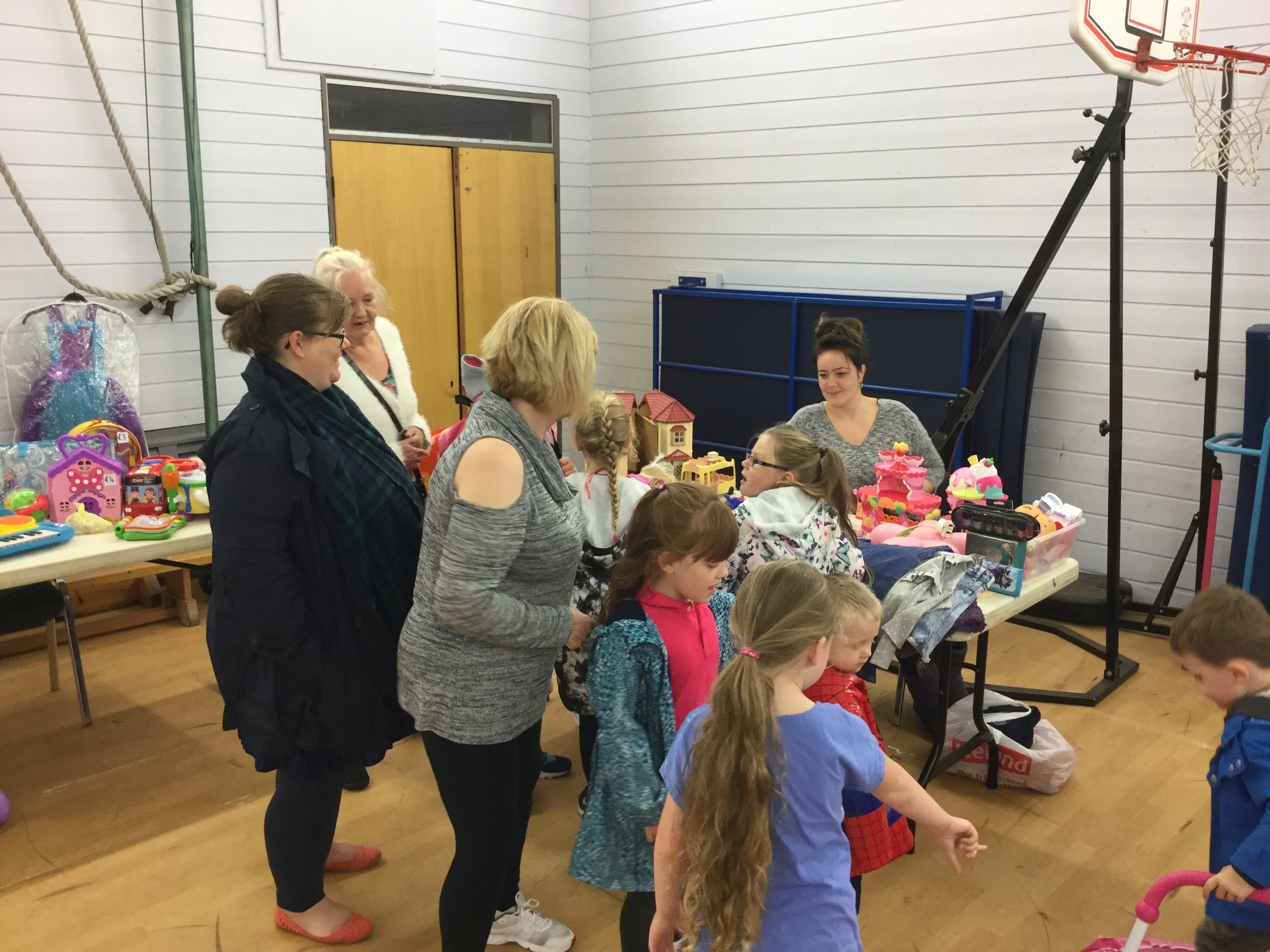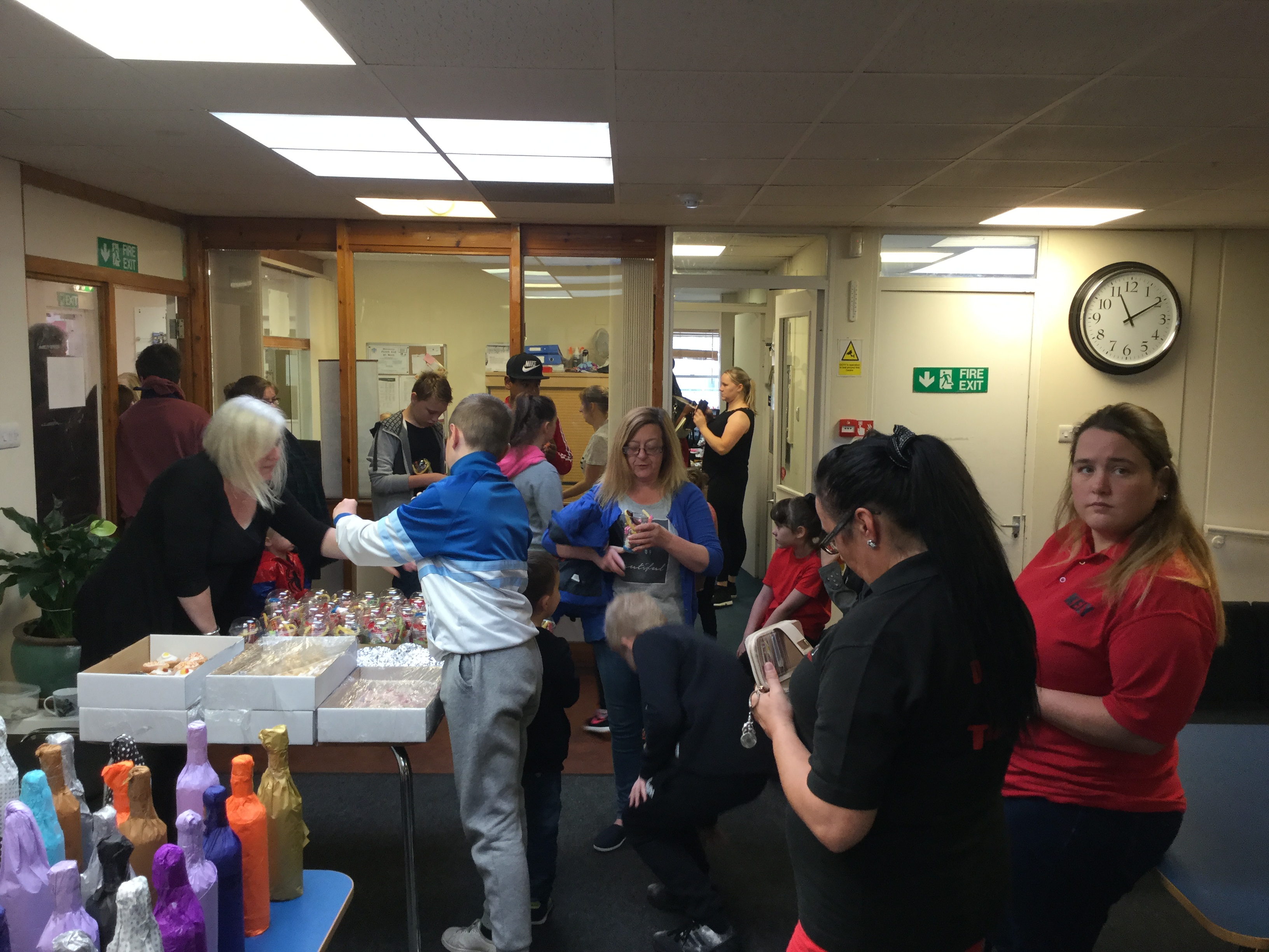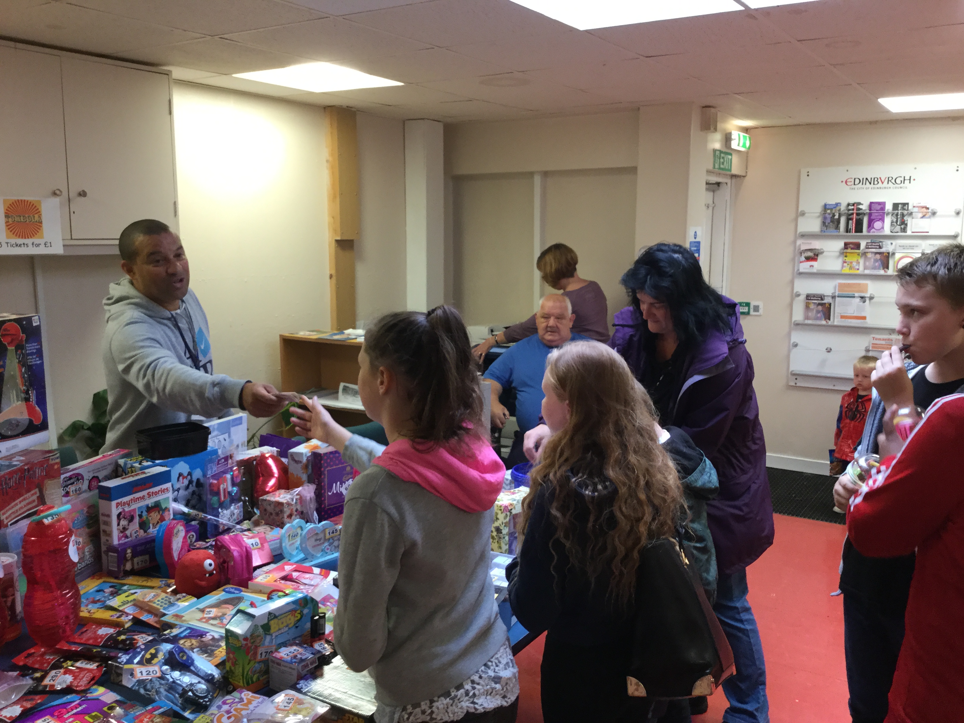 Children were entertained by a selection of fun and games with a bouncy castle, inflatable play area, balloon animals, glitter tattoos and even a fairground ride. Unfortunately the weather was a bit of a disappointment, but not willing to let it ruin the day staff at the Centre were prepared and had everything set up inside and used Clovenstone Primary School gym as an alternative for the table sale.
