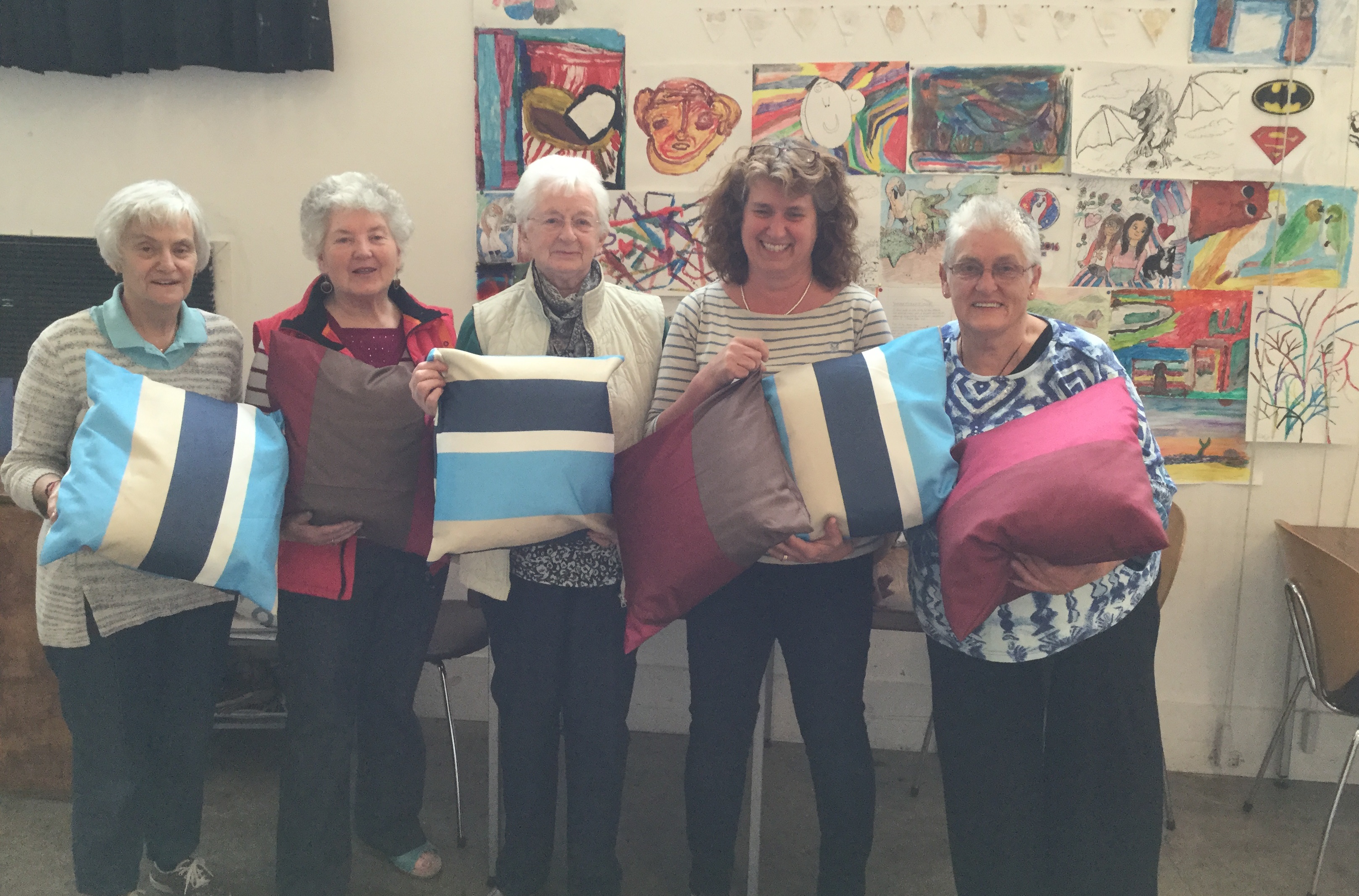 The group have spent the last couple of months creating a selection of cushion covers to make the centre feel a bit more homely when it opens this week. They were happy to meet with Edinburgh Council employee Lesley McMillan to hand over the finished work!