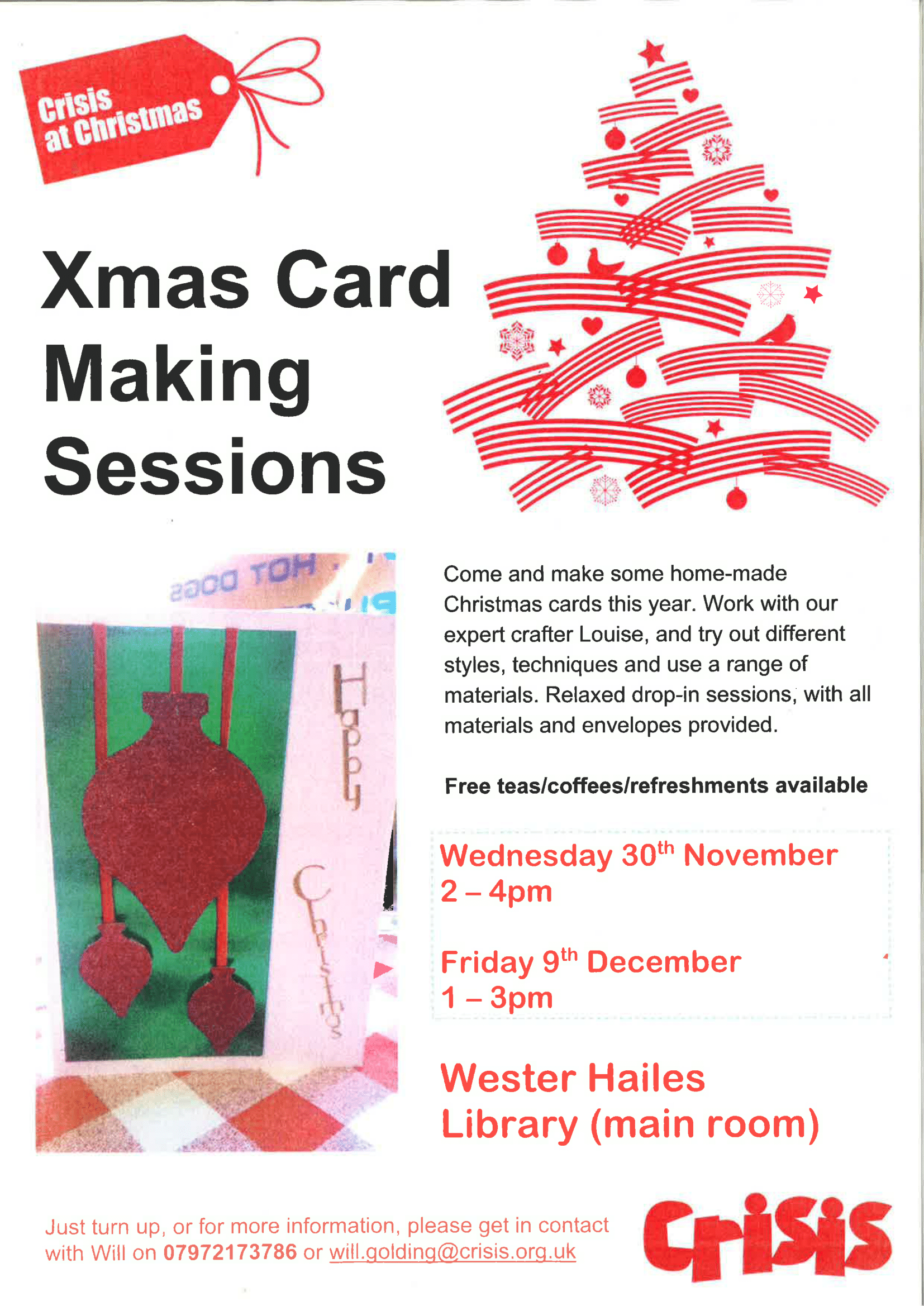 With Christmas coming up fast Crisis has announced they are running a couple of free Christmas Card making sessions at Wester Hailes Library.