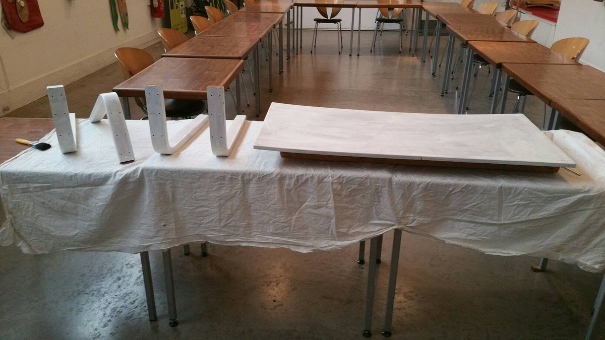 The group have recently finished work on a table from WHALE which has been imaginatively re-decorated as a piano, in keeping with their musically themed Green Room. They have also just commenced work transforming an old bed into a garden bench.
