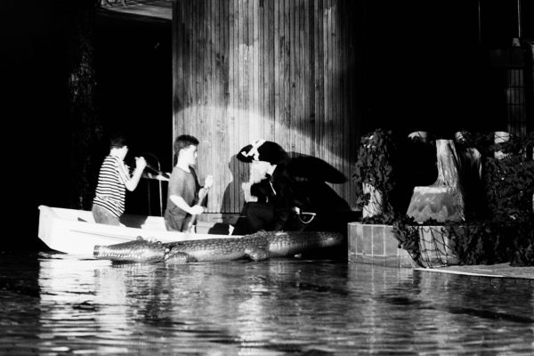 The whole pool area became the back drop for the story, and the pool itself was used for some water based scenes involving boats and an inflatable crocodile. It was advertised in the Sentinel as an exciting and innovative spectacular, making use of the “best recreational swimming pool facility on the West Side of Edinburgh.”