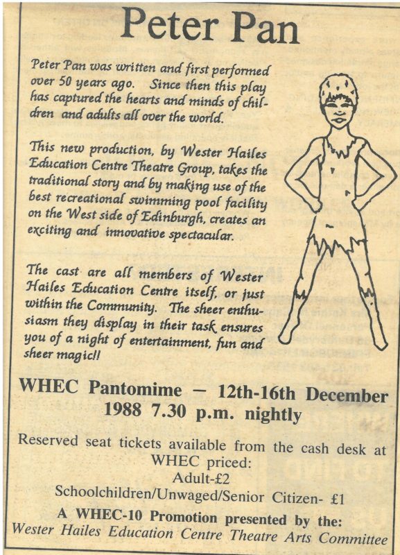 Back in 1988, the Wester Hailes Education Centre Theatre Group performed Peter Pan as their festive pantomime, but instead of using a traditional stage they located the performance by the swimming pool.