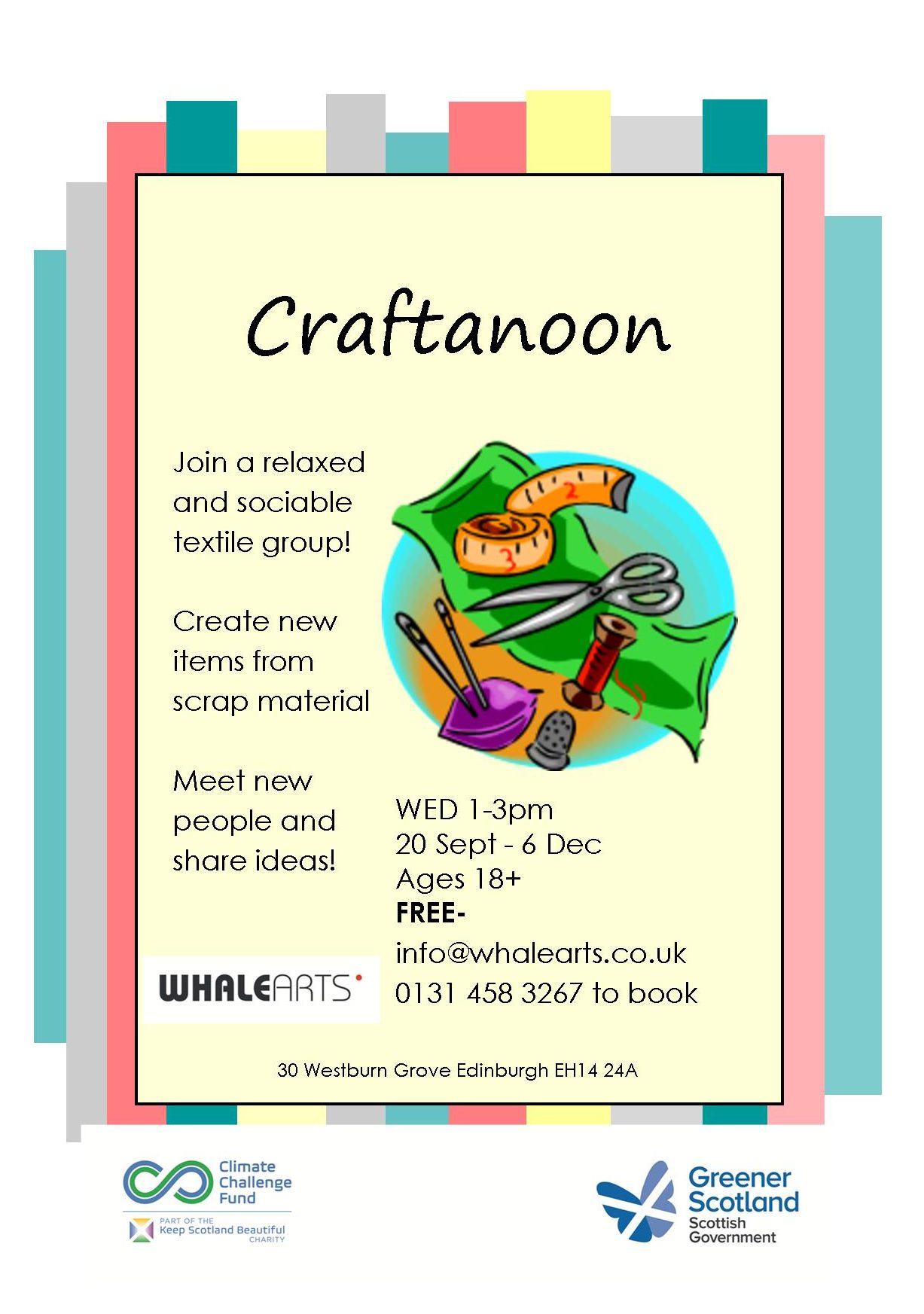 New textile group Craftanoon at WHALE Arts WHALE Arts Westburn CAN project will be running a new textile group Craftanoon on Wednesdays 1.00pm – 3.00pm at...