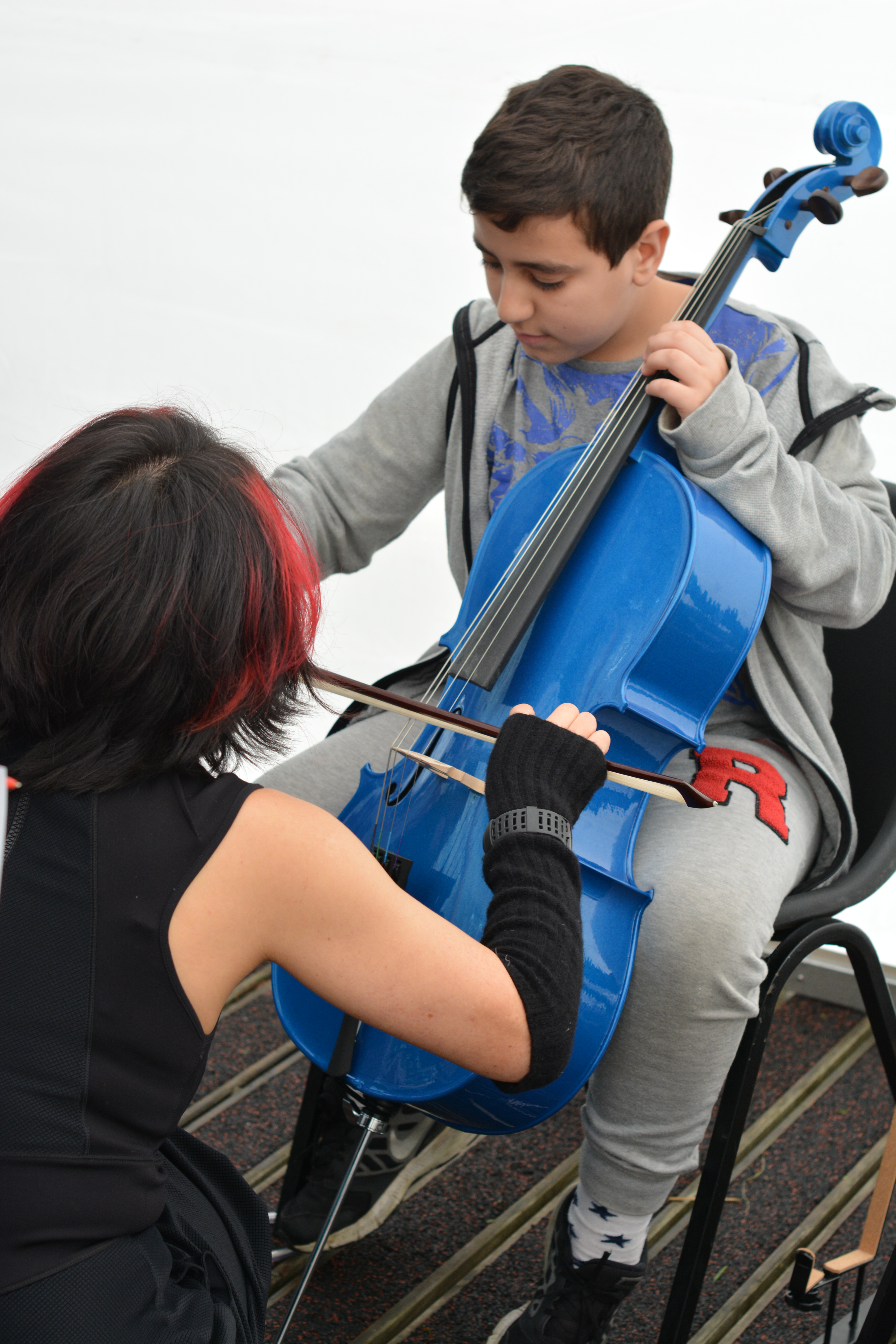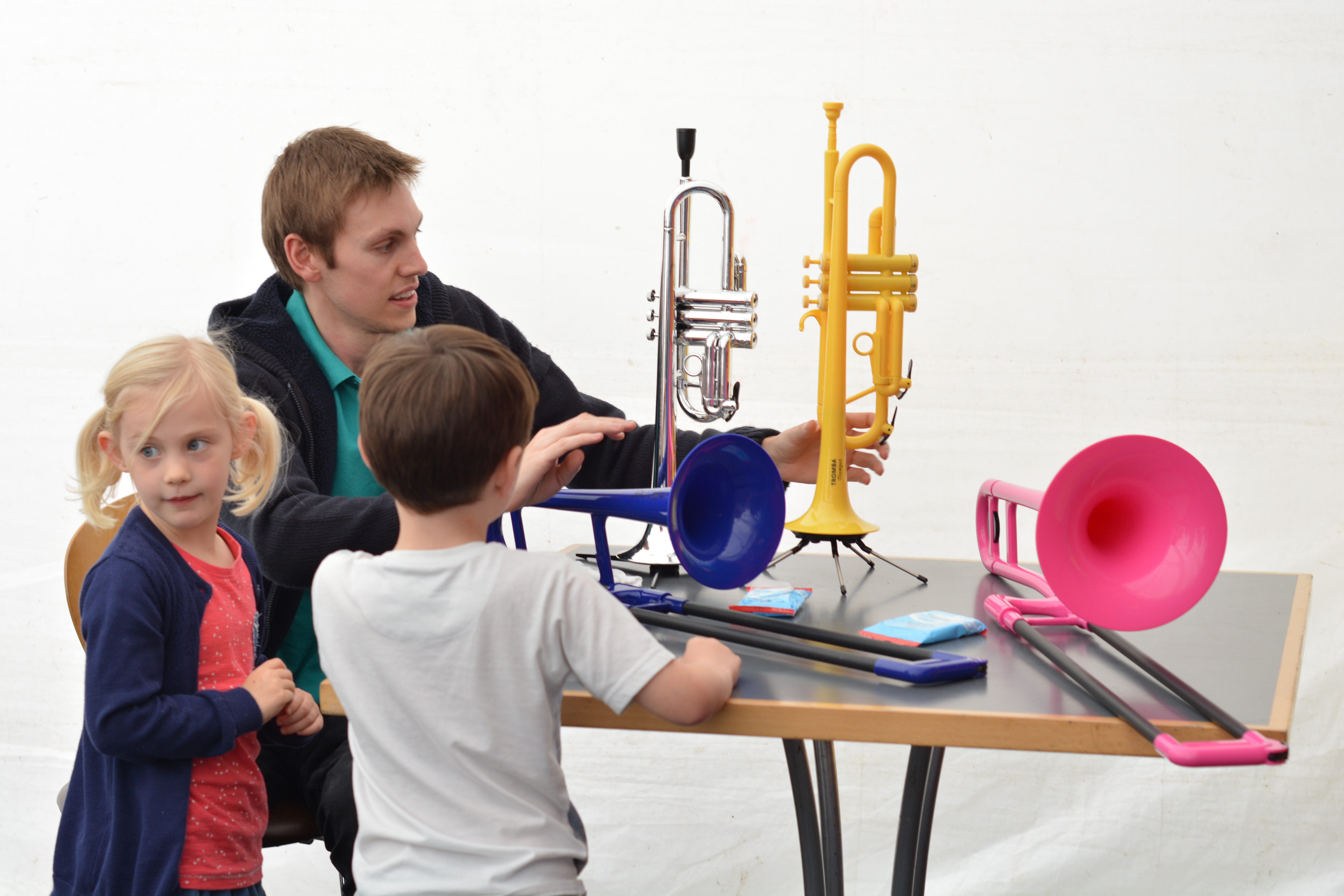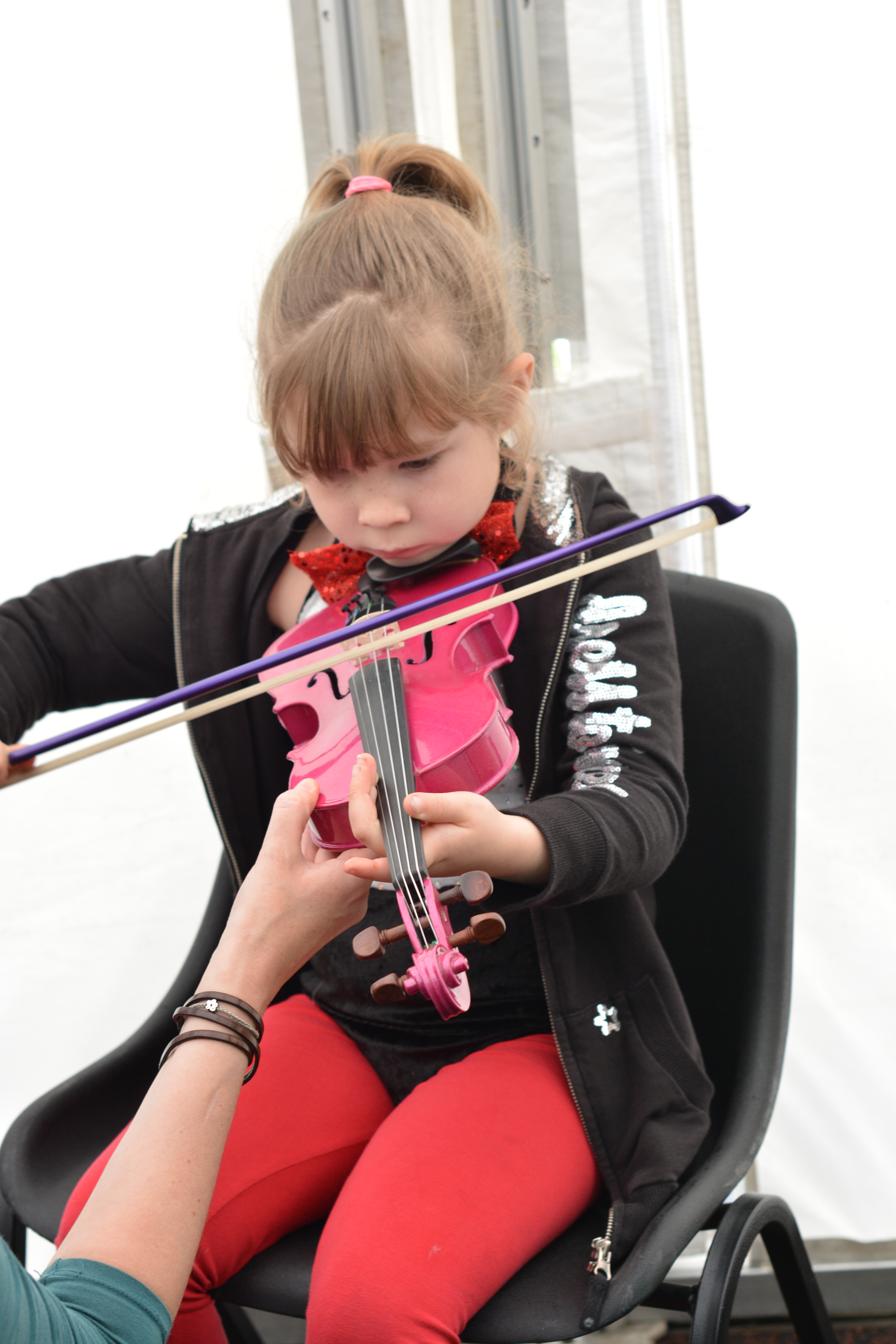 The second part of the session involved going out in to a tented area outside which was laid out with all sorts of instruments children sized set out for them to try out with the help of the musicians.