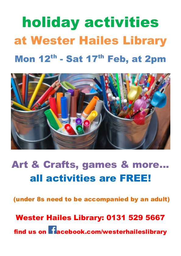 Holiday activities at Wester Hailes Library Wester Hailes Library will be holding a series of sessions full of arts and crafts, games and other activities...
