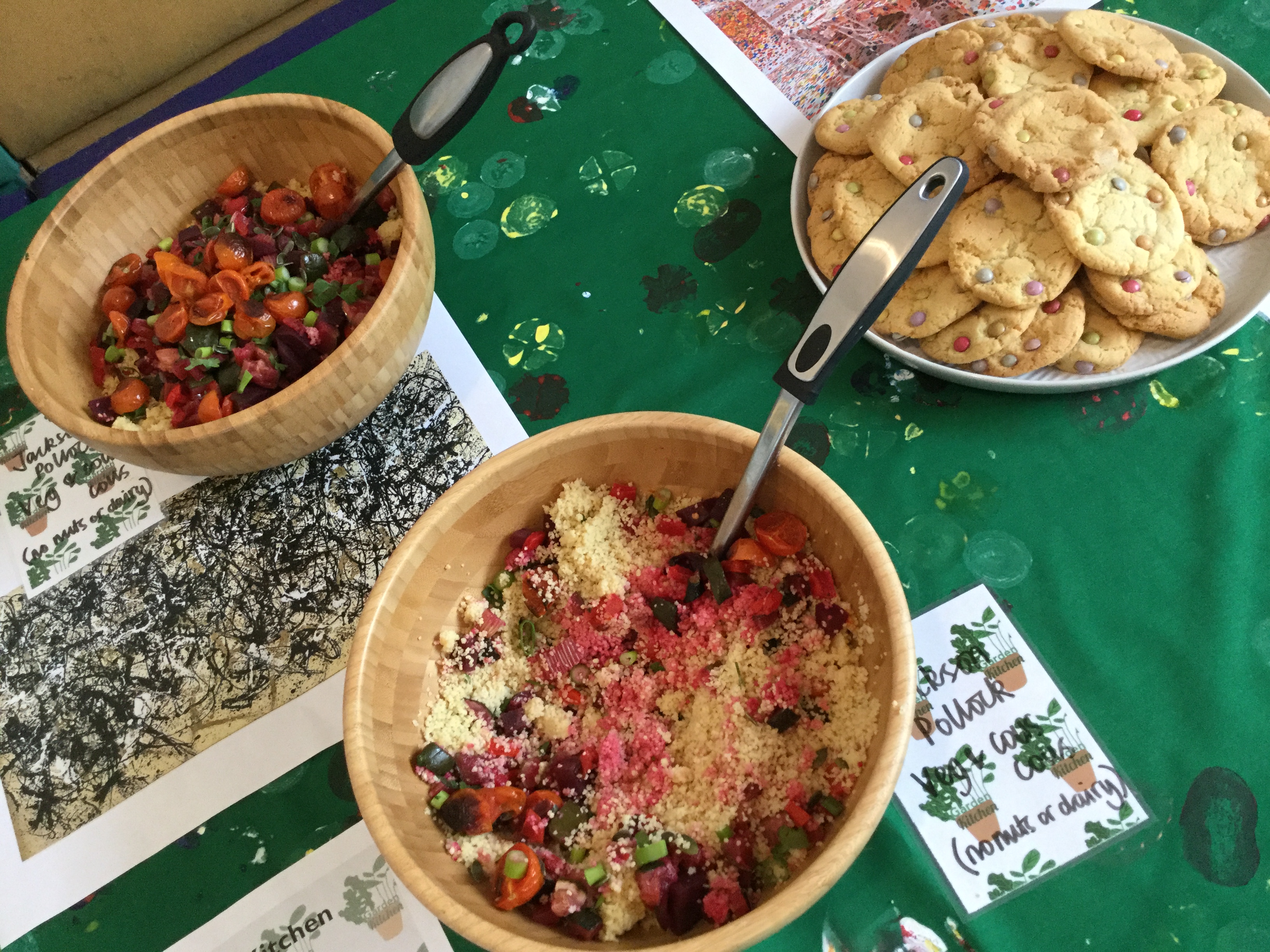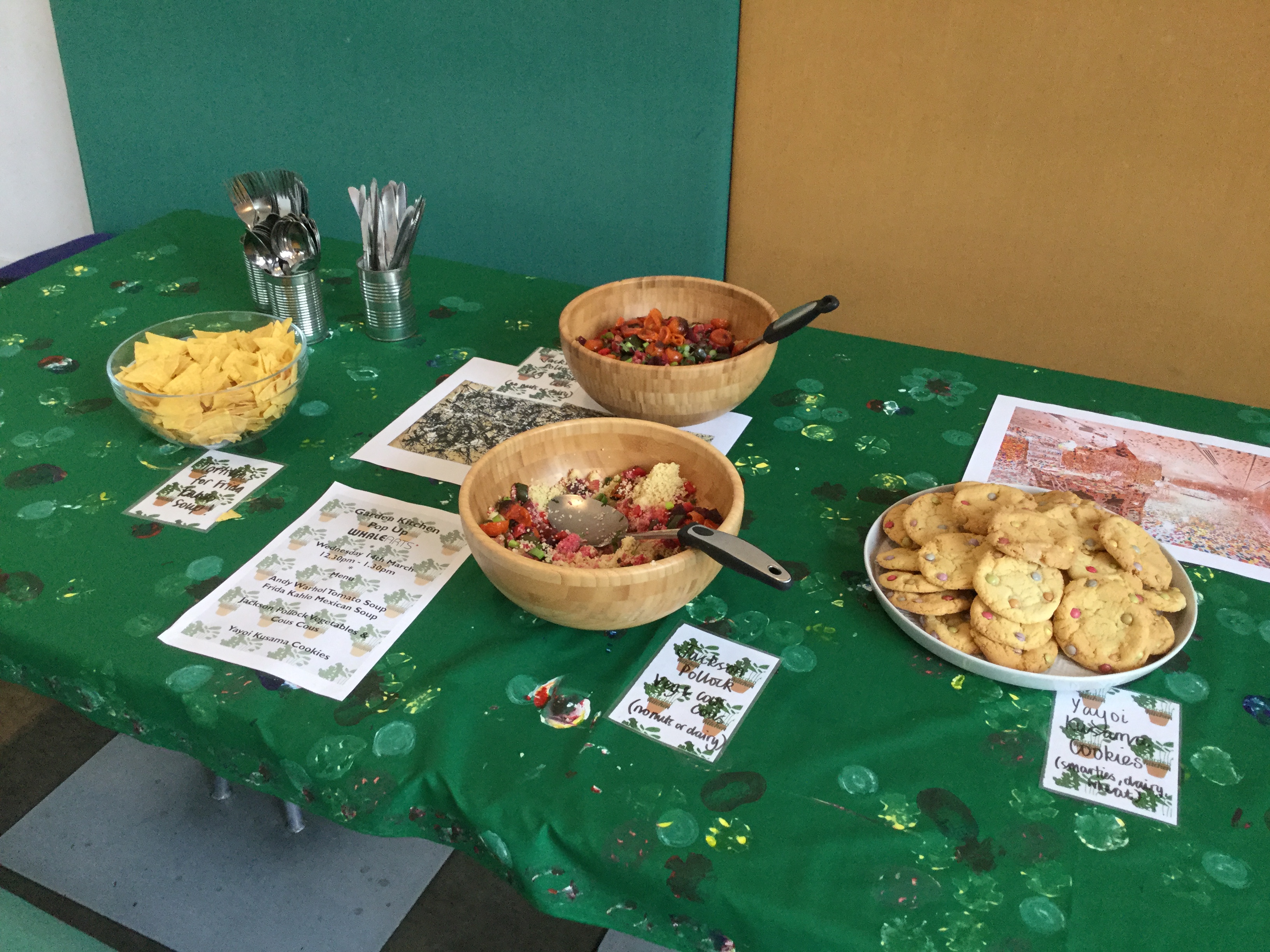 The pop up at WHALE had a special artistic themed menu offering Andy Warhol Tomato Soup, Frida Kahlo Mexican Soup, Jackson Pollock Vegetables and Couscous, and Yayoi Kusama Cookies.