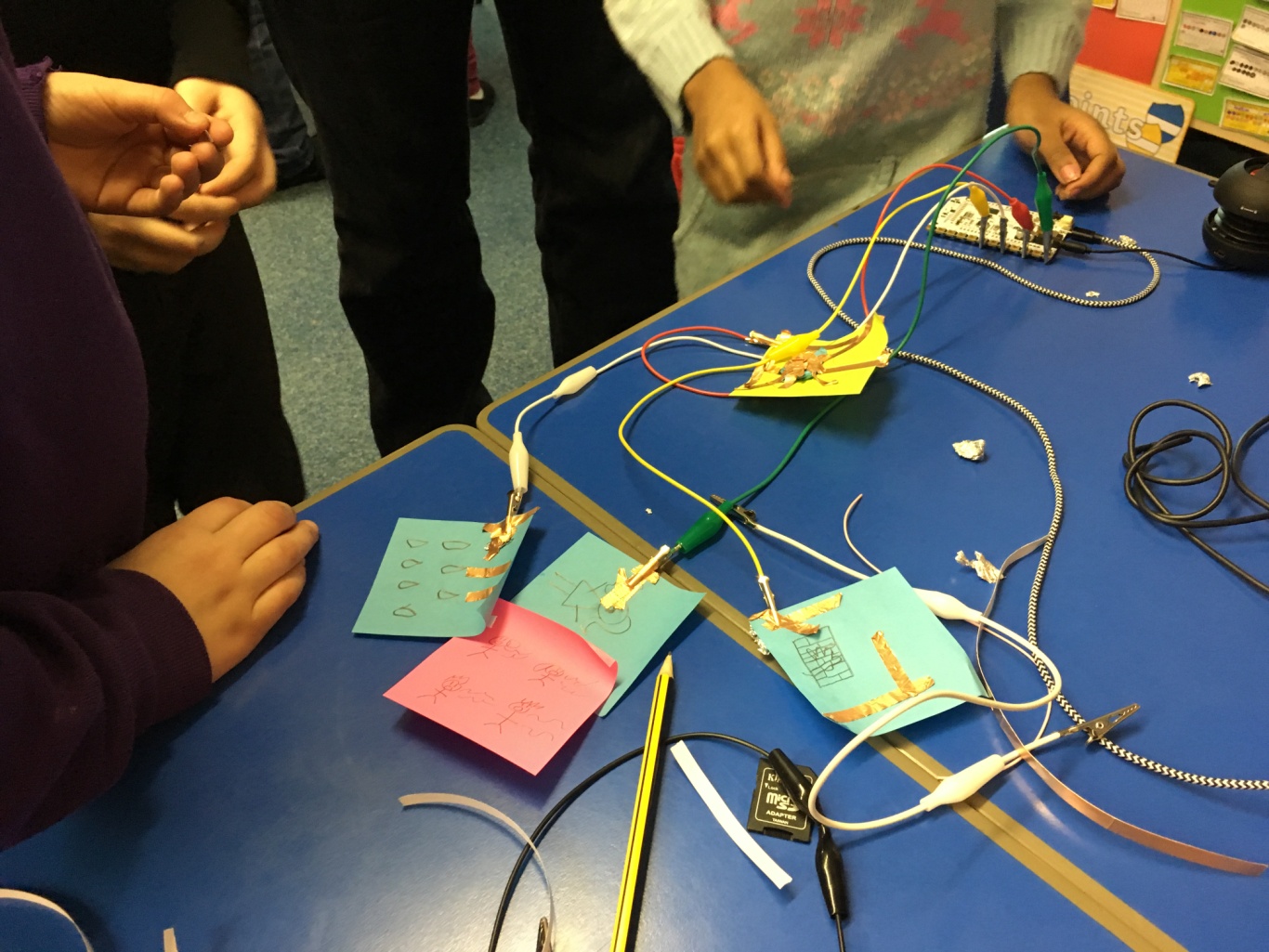 The pupils identified important places to them in their local community, which they then visited to record sounds and stories. They used innovative touchboard technology, programming mini computers with the sounds and stories they had recorded, to create special buttons on the hand drawn map which play sounds and tells the children’s stories when pressed. The project developed the pupils teamwork skills by working in groups for all activities, built confidence and self esteem by placing the voice of the pupils at the heart of the project, and expanded problem solving capabilities through the programming activity.