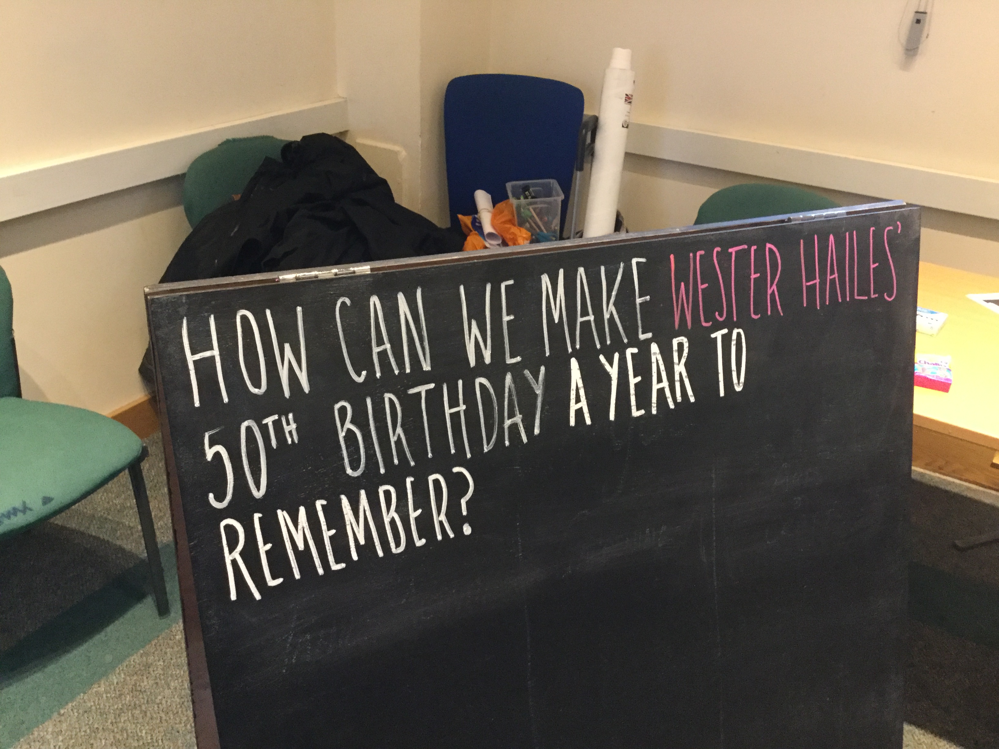 The group invited local people to come along and answer the question “How can we make Wester Hailes 50th Birthday a Year to Remember” by letting us know all your great idea on what you would like to see happen. People were also asked to list the things from the past they would most like to celebrate.
