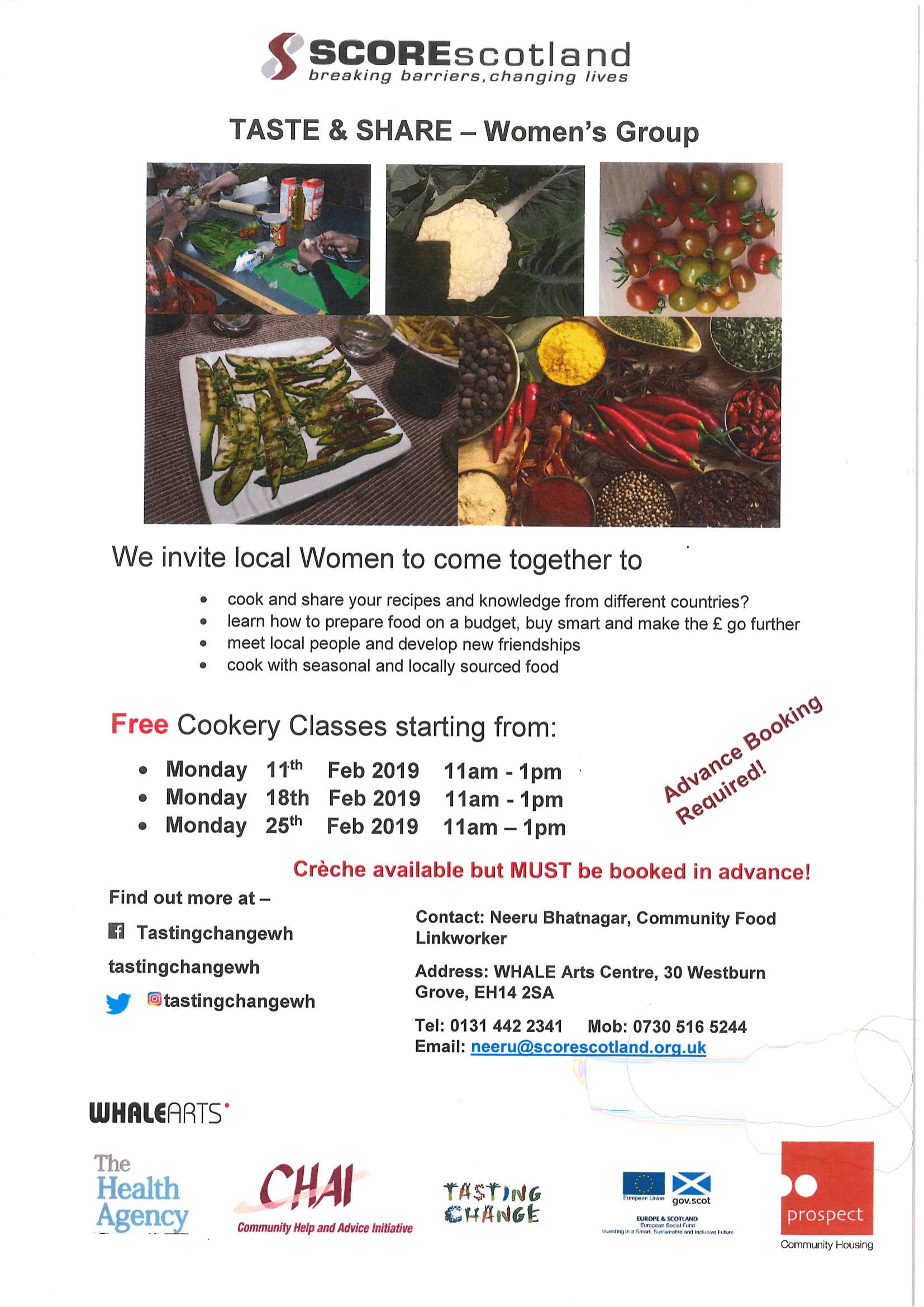 Taste and Share: Weekly Women’s Cooking group SCOREscotland has released dates for the next block of their Taste and Share sessions which invites local women to come...