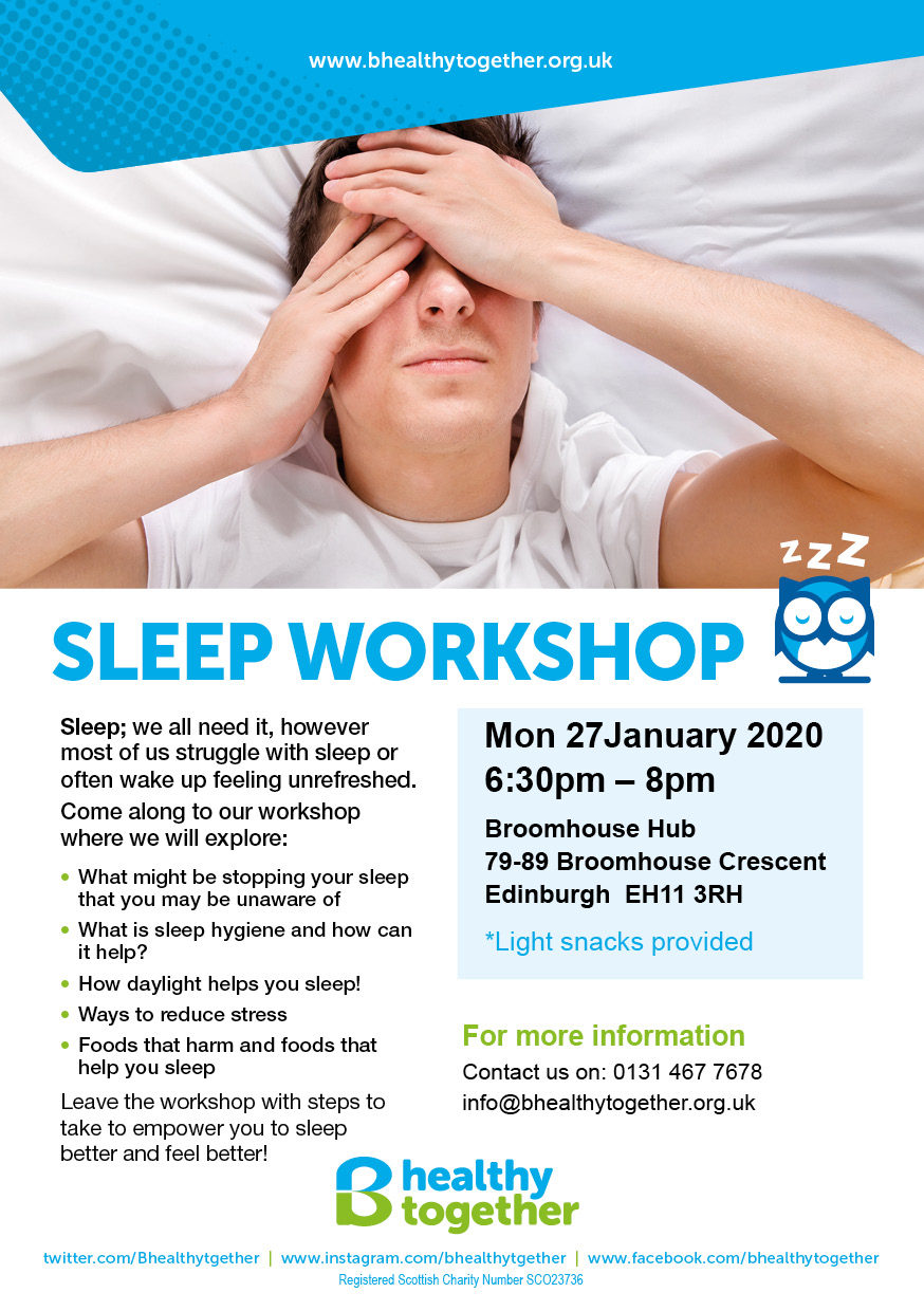 B Healthy Together Sleep Workshop B Healthy Together will be holding a Sleep Workshop on Monday 27 January 2020, 6.30pm – 8.00pm at the...