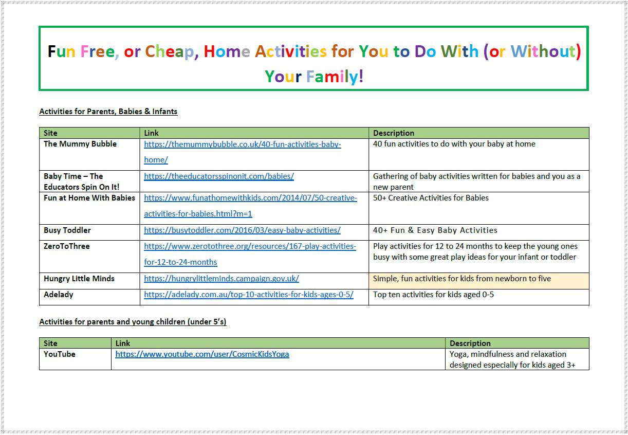 Fun Activities To Do At Home This handy guide, outlining a list of fun free or cheap acitivities you can do at home with or...