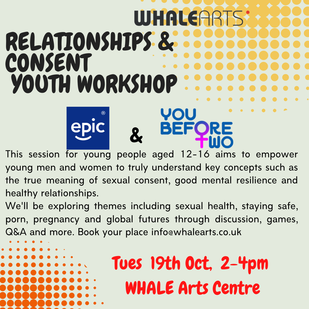 Relationships and Consent Workshops WHALE Arts in partnership with Epic and You Before Two will be golding a relationships and consent youth workshop...