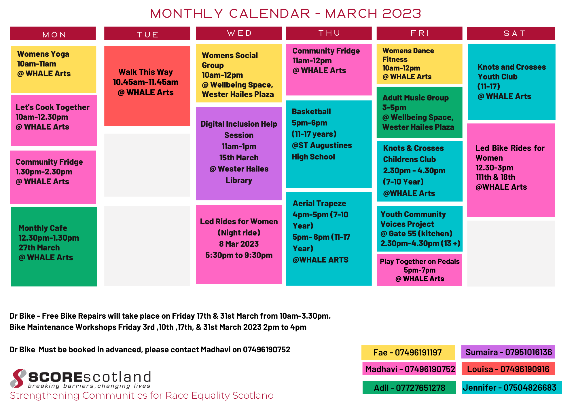 You can read an embedded version of the timetable below, for more information contact SCOREscotland on 0131 442 2341.