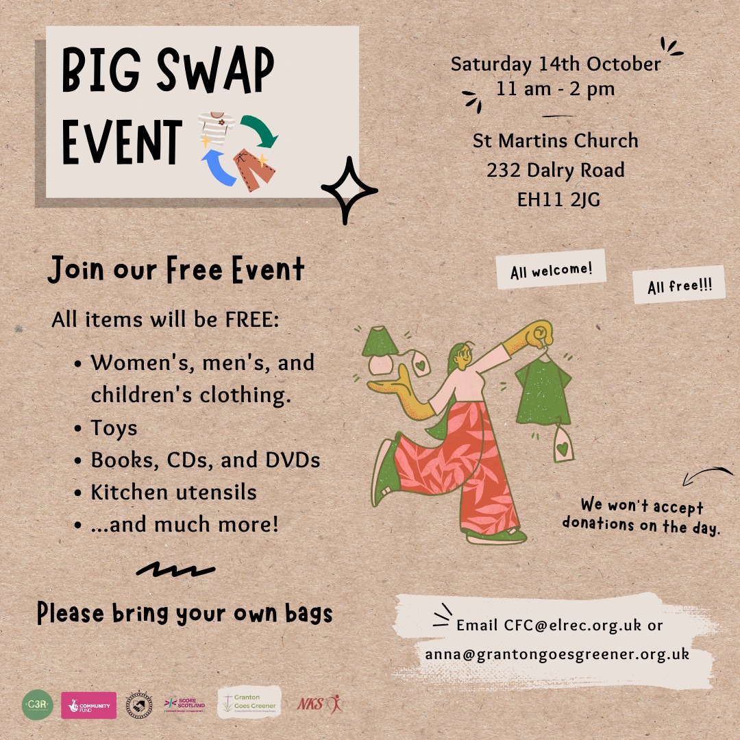 SCOREscotland will be joining the Communities Reduce Reuse and Recycle Project for a Big Swap event on Saturday, October 14th, 2023, at St. Martins Church.