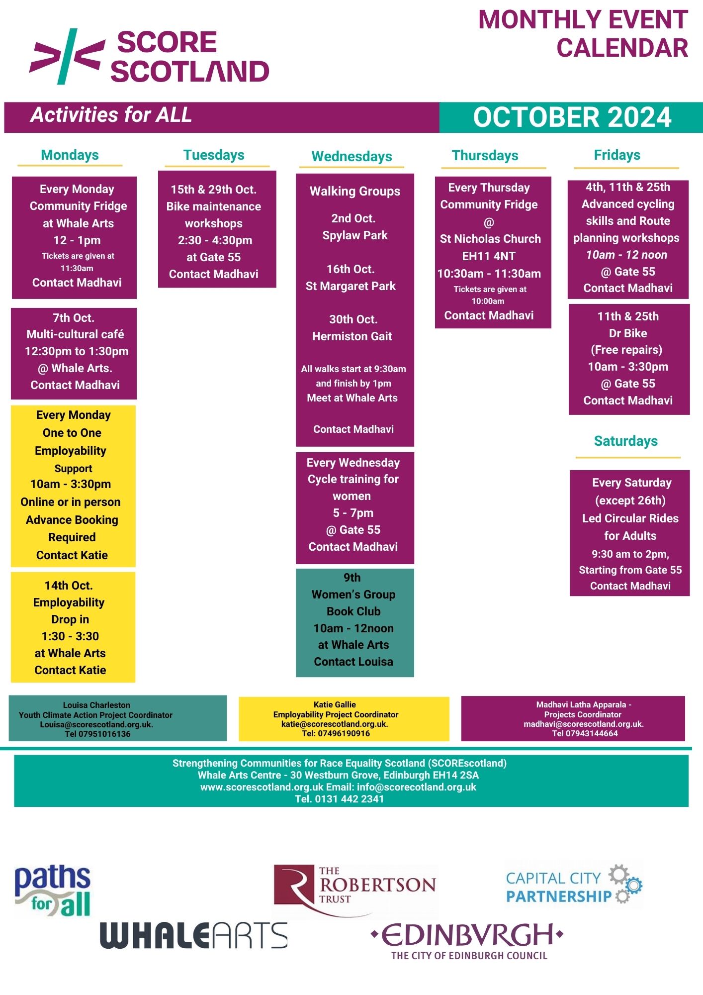 You can read an embedded version of the timetable below, for more information contact SCOREscotland on 0131 442 2341.