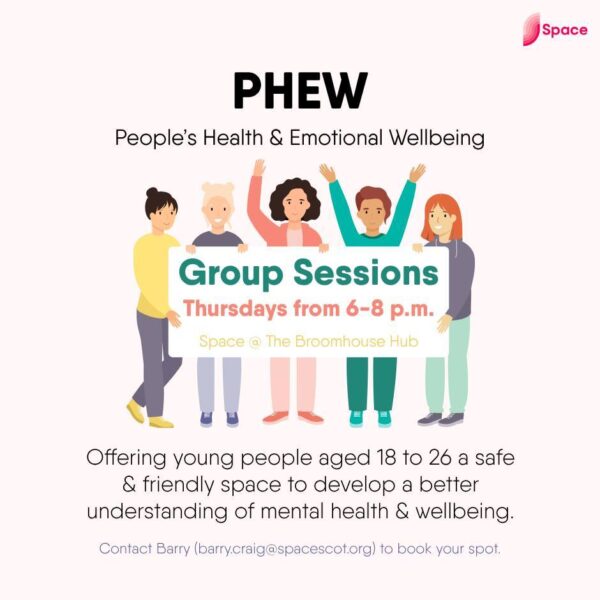 Space at the Broomhouse Hub People’s Health and Emotional wellbeing Service – PHEW run group and one to one sessions at the Broomhouse Hub.