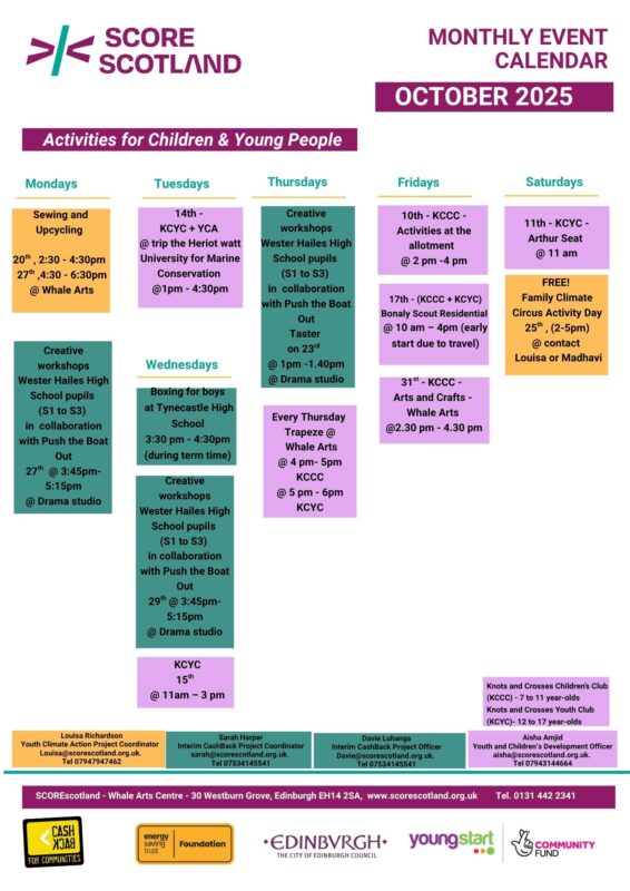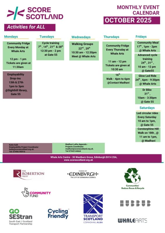 SCOREscotland have released their monthly programme detailing all dates and times for their regular programme of activities for October 2025.